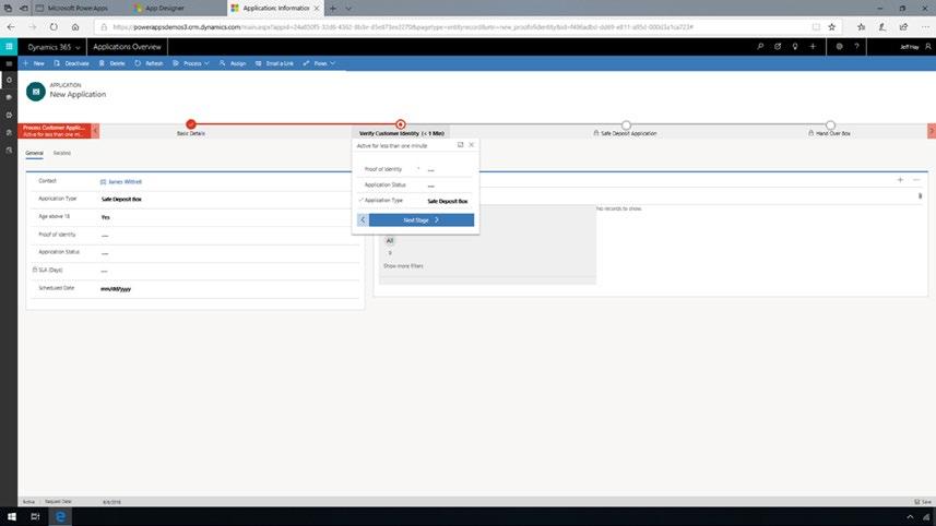 Model-driven applications focus on creating simple data entry style applications that can have a defined workflow. A perfect use case for this type of application is an employee onboarding application where there is a defined business process where data flows from onboarding the tax records, then payroll, and finally security access. This type of business process can be seen in Figure 1-2 with the dots on top of the screen. One key requirement of model-driven applications is they use Common Data Services, which will be discussed later in this chapter.