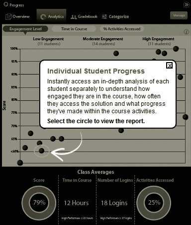 ■ The Progress App lets you know exactly how your students are doing (and where they might be struggling) with live analytics. You can see overall class engagement and drill down into individual student performance, enabling you to adjust your course to maximize student success.