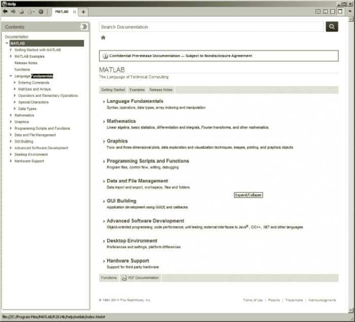 There are three ways to get help in MATLAB. The preferred method is to use the Help Browser. The Help Browser can be started by selecting the icon from the Toolstrip or by typing helpdesk or helpwin in the Command Window. A user can get help by browsing the MATLAB documentation, or he or she can search for the details of a particular command. The Help Browser is shown in Figure 1.10.