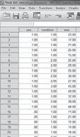■ There are two factors that can be investigated: Factor 1 is the educational intervention (‘condition’), which has three conditions (Control (1), A (2) or B (3)); Factor 2 is sex of pupil (‘sex’), which has two conditions (1 or 2, where 1 female pupils and 2 male pupils). Figure 13.1 Data used for independent ANOVA