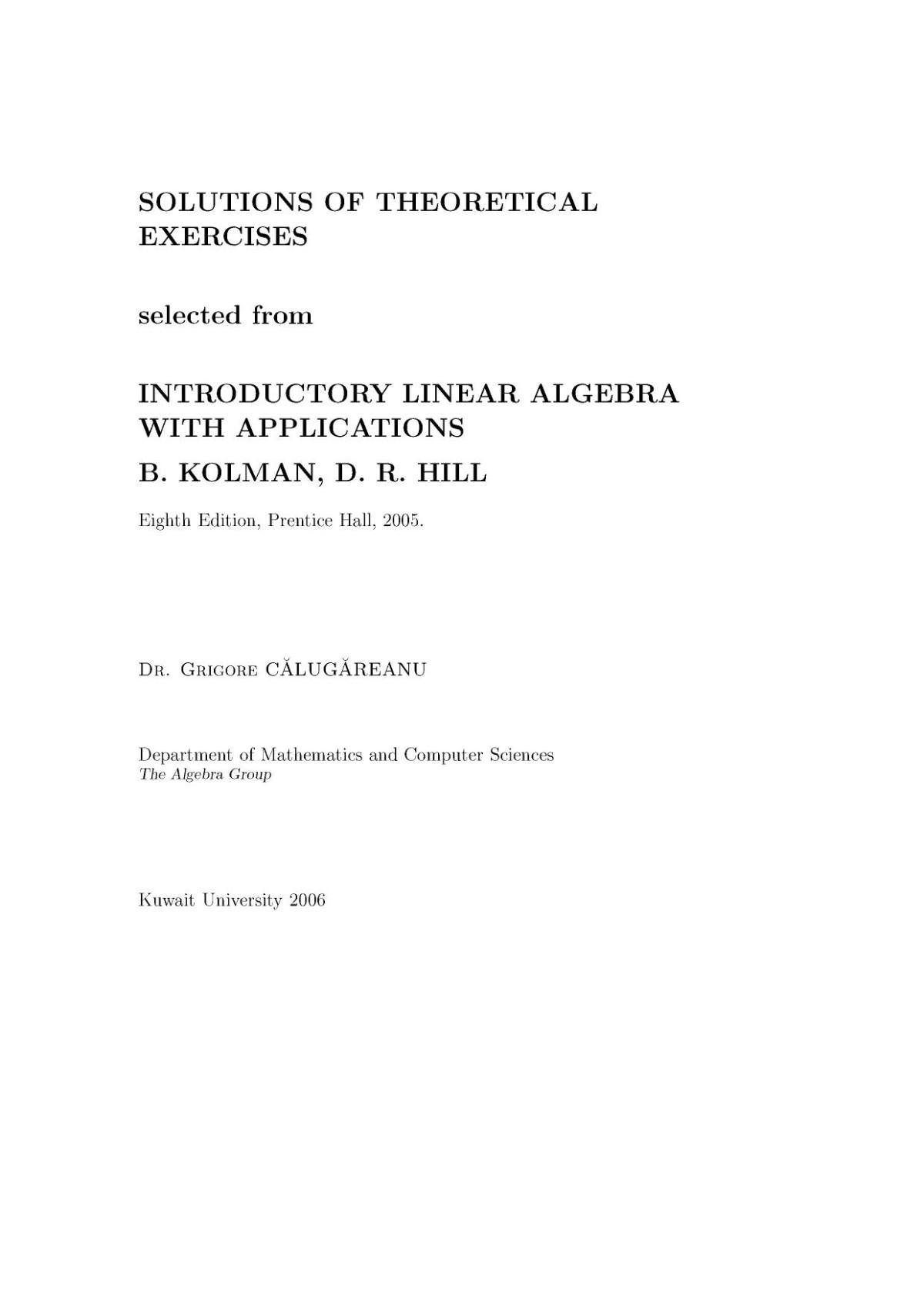 Theexercisesformanintegralpartofthebook.Manyarecomputationalinna ture,whereasothersareofatheoreticaltype.Manyofthelatterandtheexperi ments,tobefurtherdescribedbelow,requireverbalsolutions.Exercisestohelp developproof-writingskillsaskthestudenttoanalyzeproofs,amplifyarguments, orcompletepartialproofs.Guidanceandpracticeinrecognizingkeyelements and patterns havebeen extended inmanynew exercises. Answers toalloddnumbered exercisesand self-test items appear intheback of thebook. Solutions toall exercises appear inthe Instructor's Solutions Manual, which is available (to instructors only)gratisfromthepublisher.The Instructor's Solutions Manual alsoincludesnotesonthe pedagogical ideas underlying eachchapter,goalsand grading guidelines forthe experiments (further described below), andatestbank.