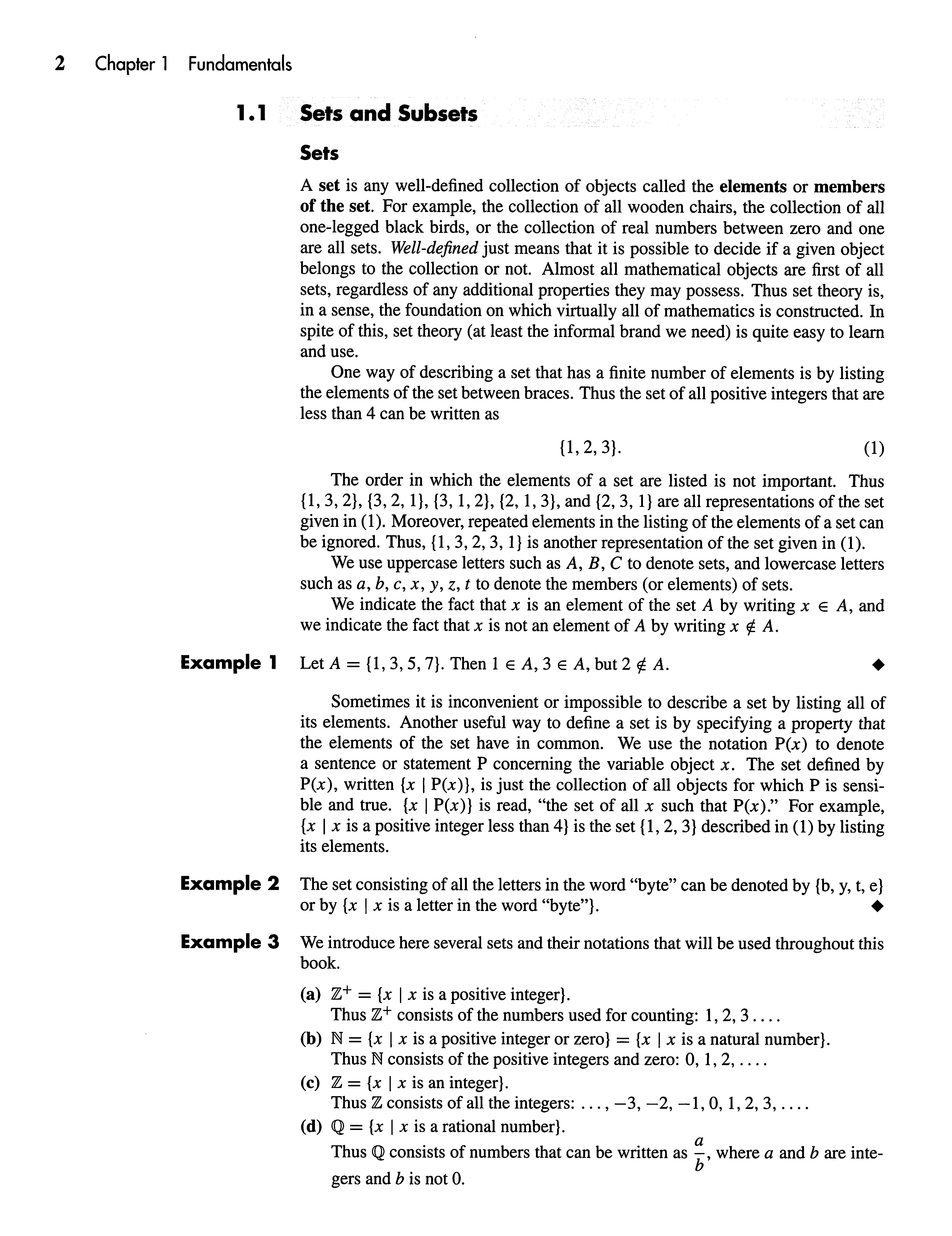 Example 3 We introduce here several sets and their notations that will be used throughout this book.