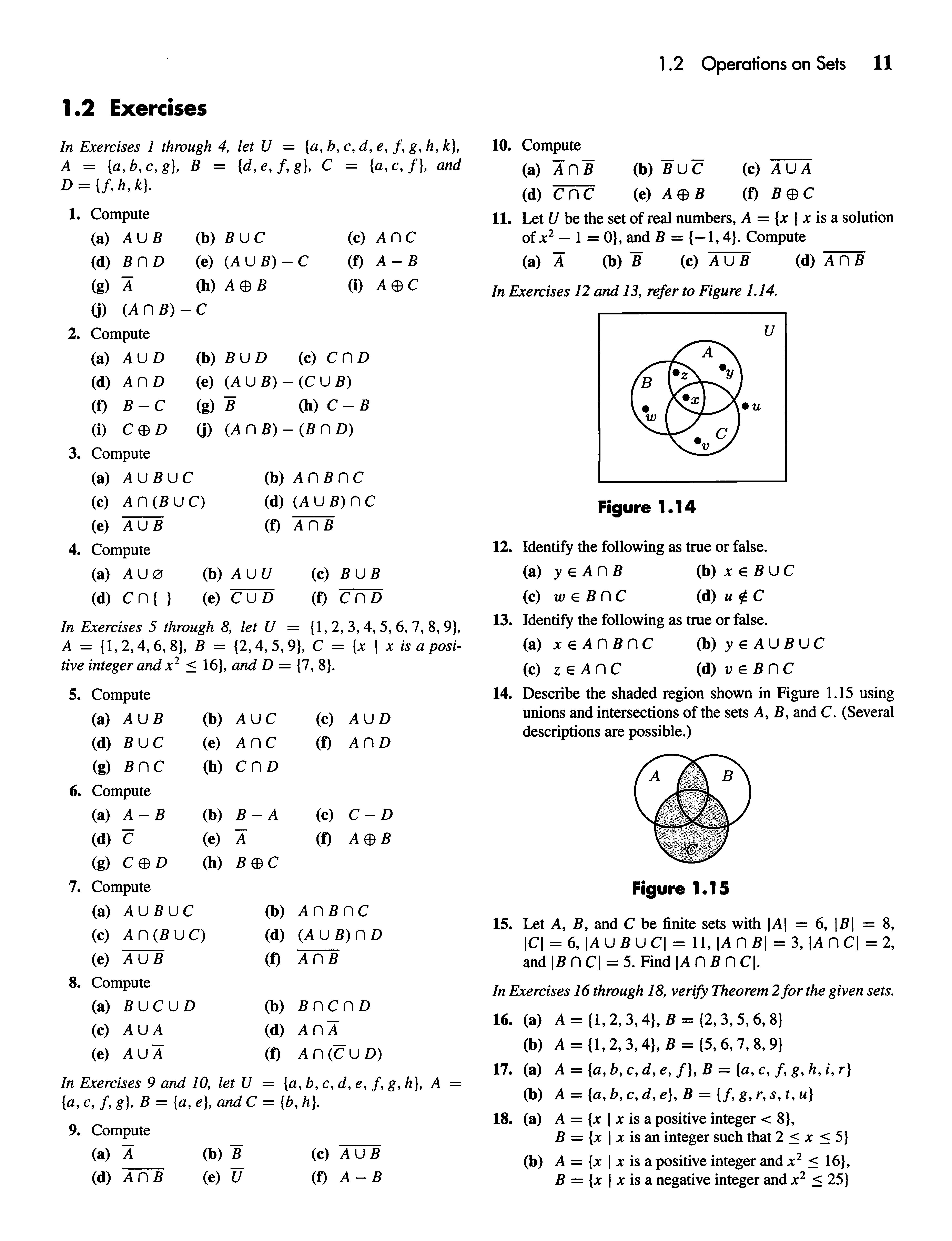 InExercises1through4,letU= [a, b, c, d, e, /, g, h, k], A = (fl,i,c,g), B= [d,e,f,g], C= [a,c,f], and D = [f,h,k}.