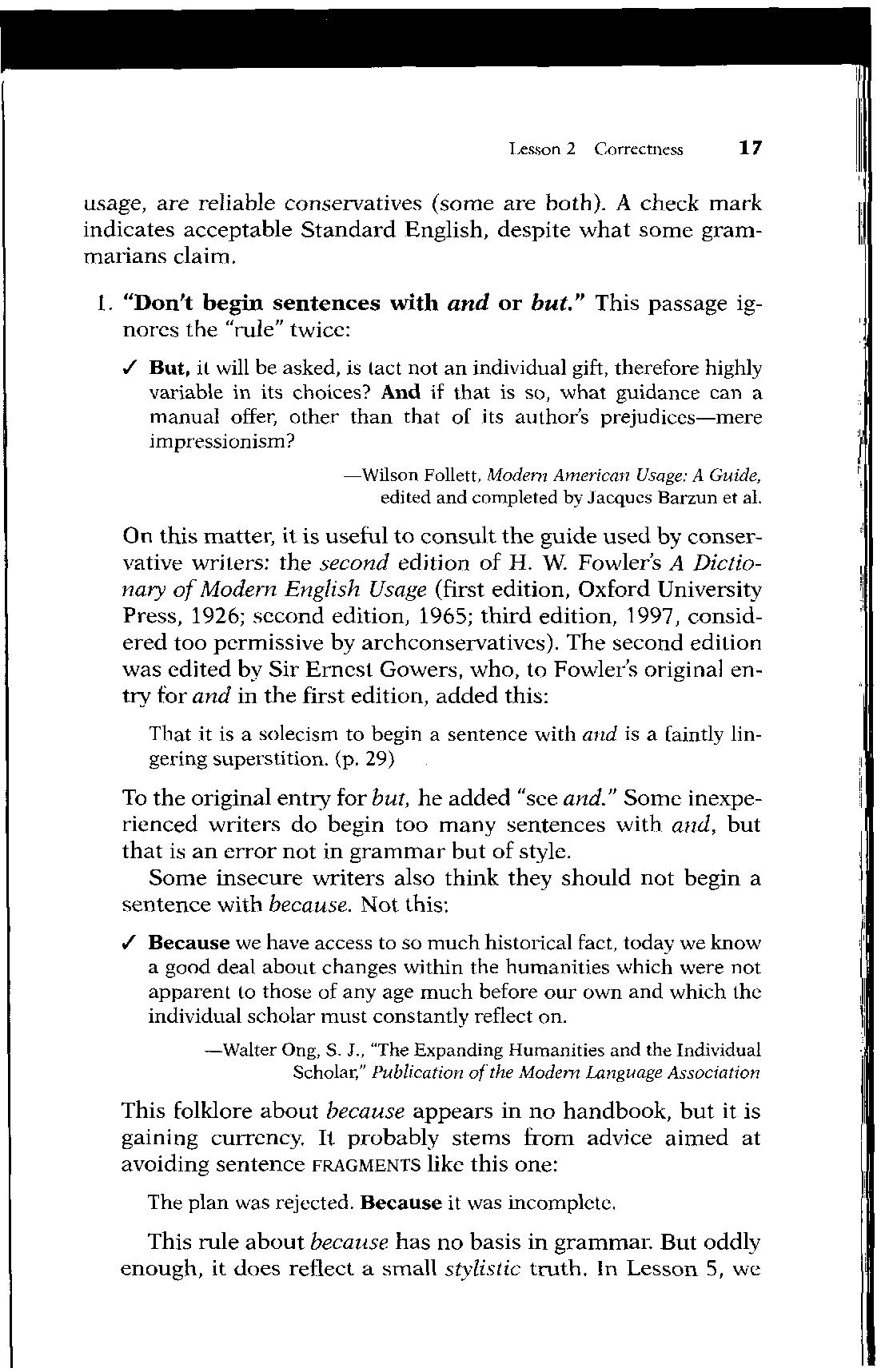 On this matter, it is useful to consult the guide used by conservative writers: the second edition of H W Fowlers A Dictionary of Modem English Usage (first edition, Oxford University Press, 1926; second edition, 1965; third edition, 1997, considered too permissive by archconservatives) The second edition was edited by Sir Ernest Gowers, who, to Fowler's original entry for and in the first edition, added this: