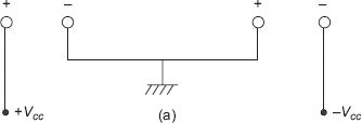 Op-amp 741 is a dual power supply IC. It needs + Vcc and − Vcc of 15 V each, since a differential amplifier circuit configuration is used. For a differential amplifier, Vcc and − VEE are to be given for biasing. So, 741 needs two power supplies. They are to be connected as shown in Fig. 1.7. If, the polarity of the voltages is not given properly, the IC will be damaged.