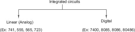 Largely, based on the application and output response, ICs are classified as (1) Linear Integrated Circuits (Linear ICs), and (2) Digital Integrated Circuits (Digital ICs).
