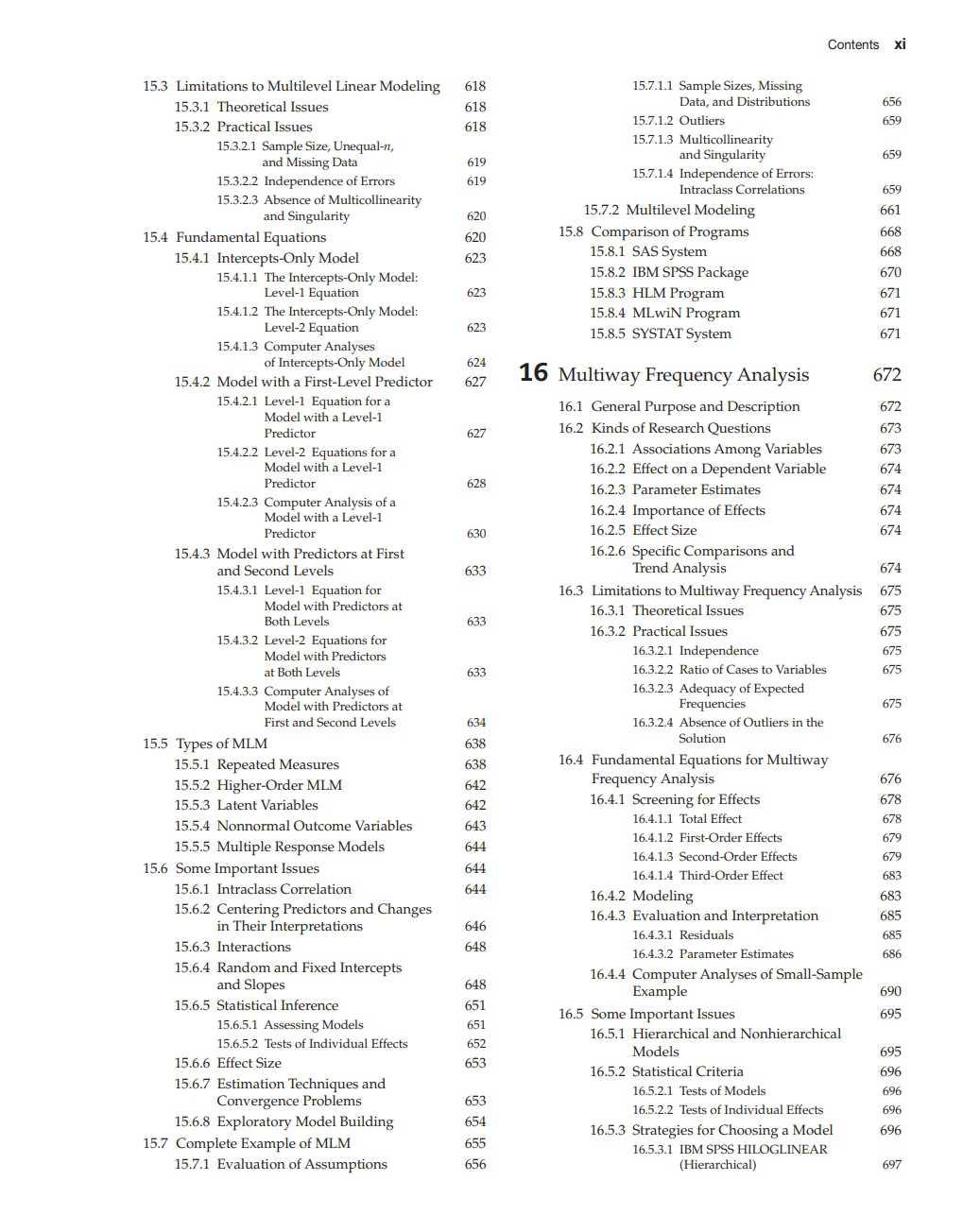 C hapter 18 is an attem pt to integra te uni va riate, biva r ia te, and mul ti va riate statistics through the m u l tivari a te gener al linea r m odel. The co mmon e lemen ts u nderl ying all the techni ques are emph asized, r ather than the differences am ong them . Chapter 18 is m eant to p u ll togethe r the ma te ri al in the rem a in der of the b ook with a conceptu al r ather than pragma ti c e mp hasis. Som e may w ish t o con s id er this m ater ial earli er, for inst ance, immedi a tel y after C h a p te r 2.