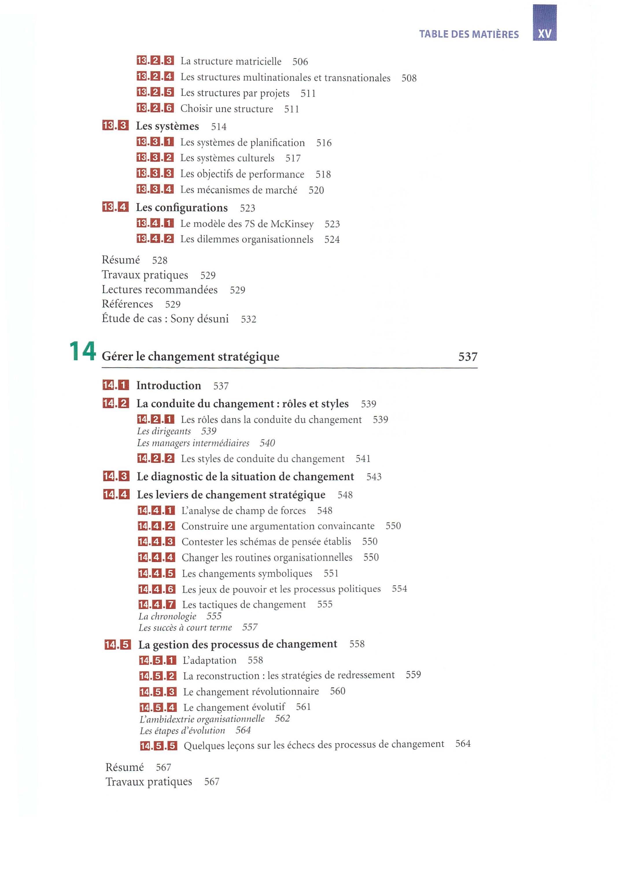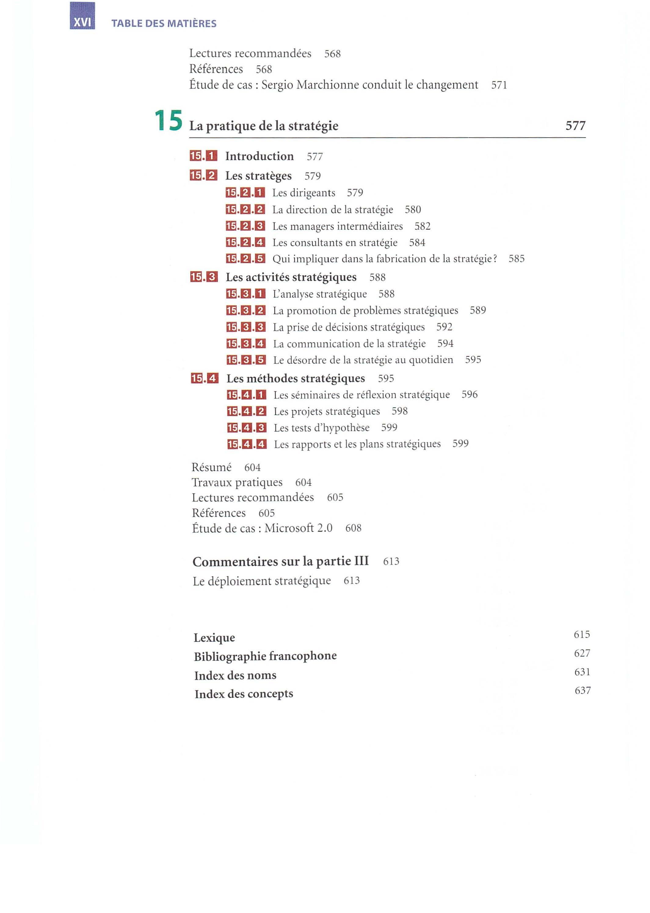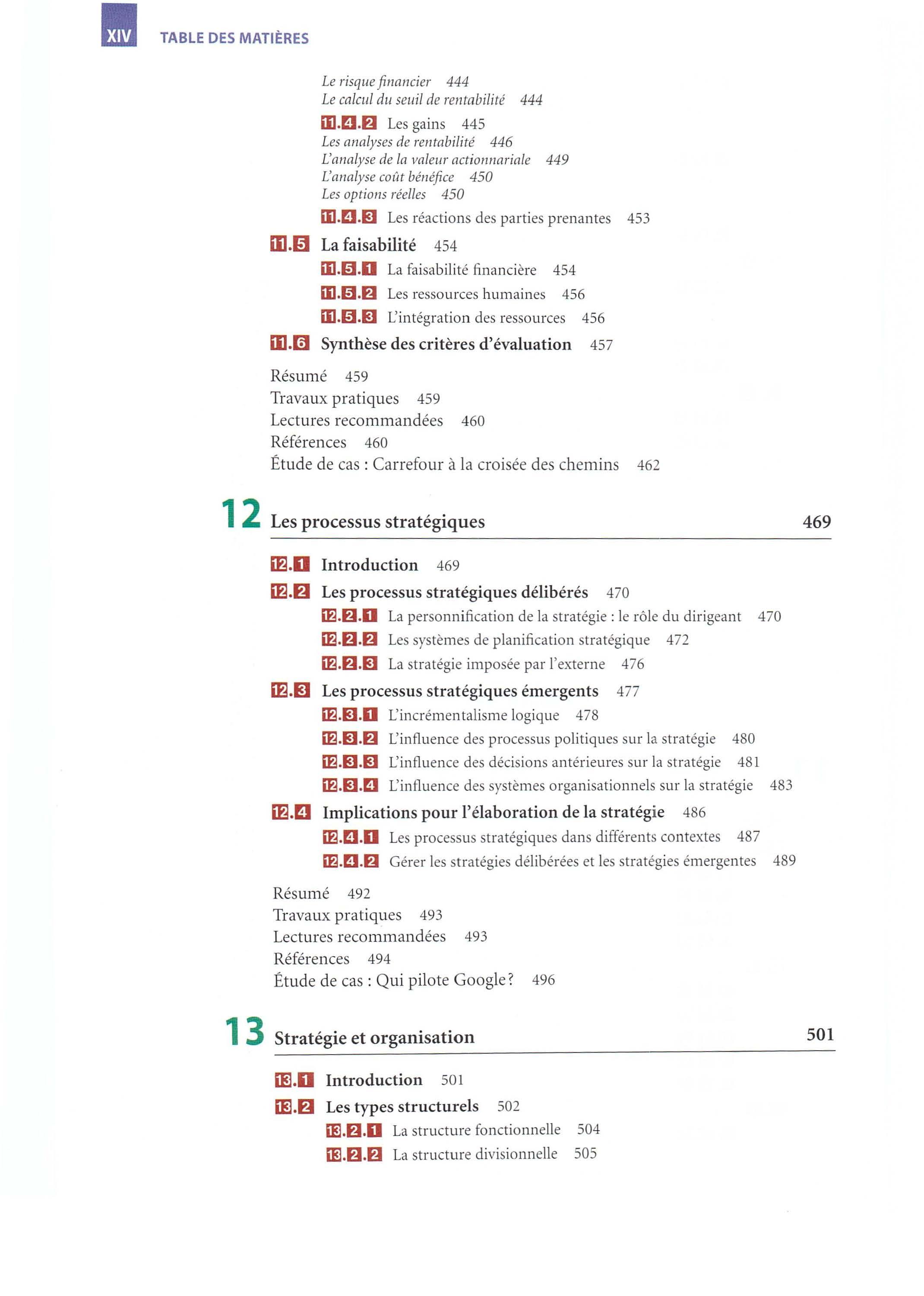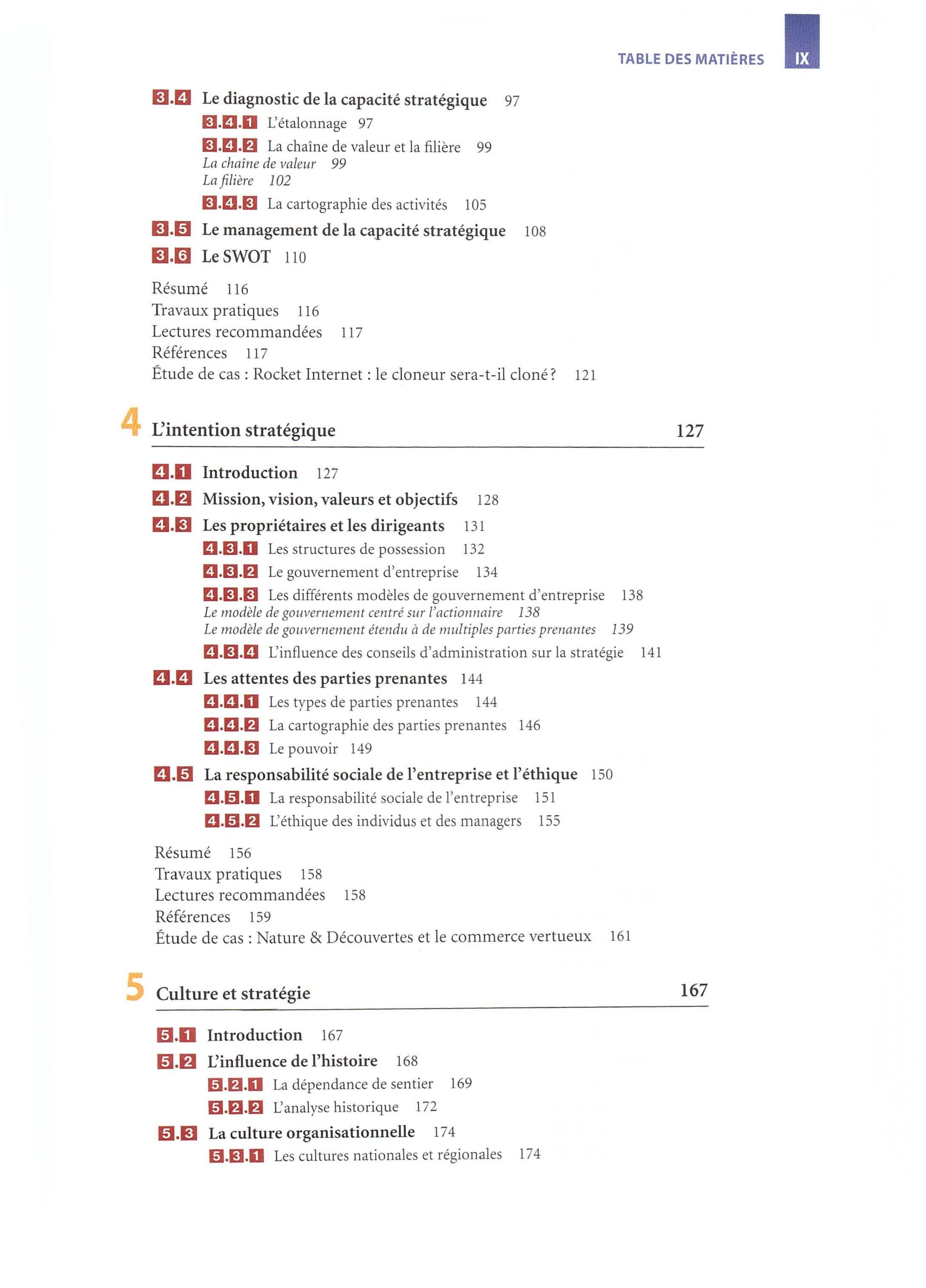 • Un point de vue critique Par-delà les quatre prismes de la stratégie, nous encourageons la démarche critique en terminant chacun des quinze chapitres par un débat qui fa it le point sur une controverse académique liée au thème du chapitre. Cette controverse permet de souligner la vitalité de la recherche en management stratégique et de montrer dans quelle mesure les concepts et outils présentés dans l'ouvrage résultent de discussions fécondes et de débats parfois houleux entre chercheurs.
