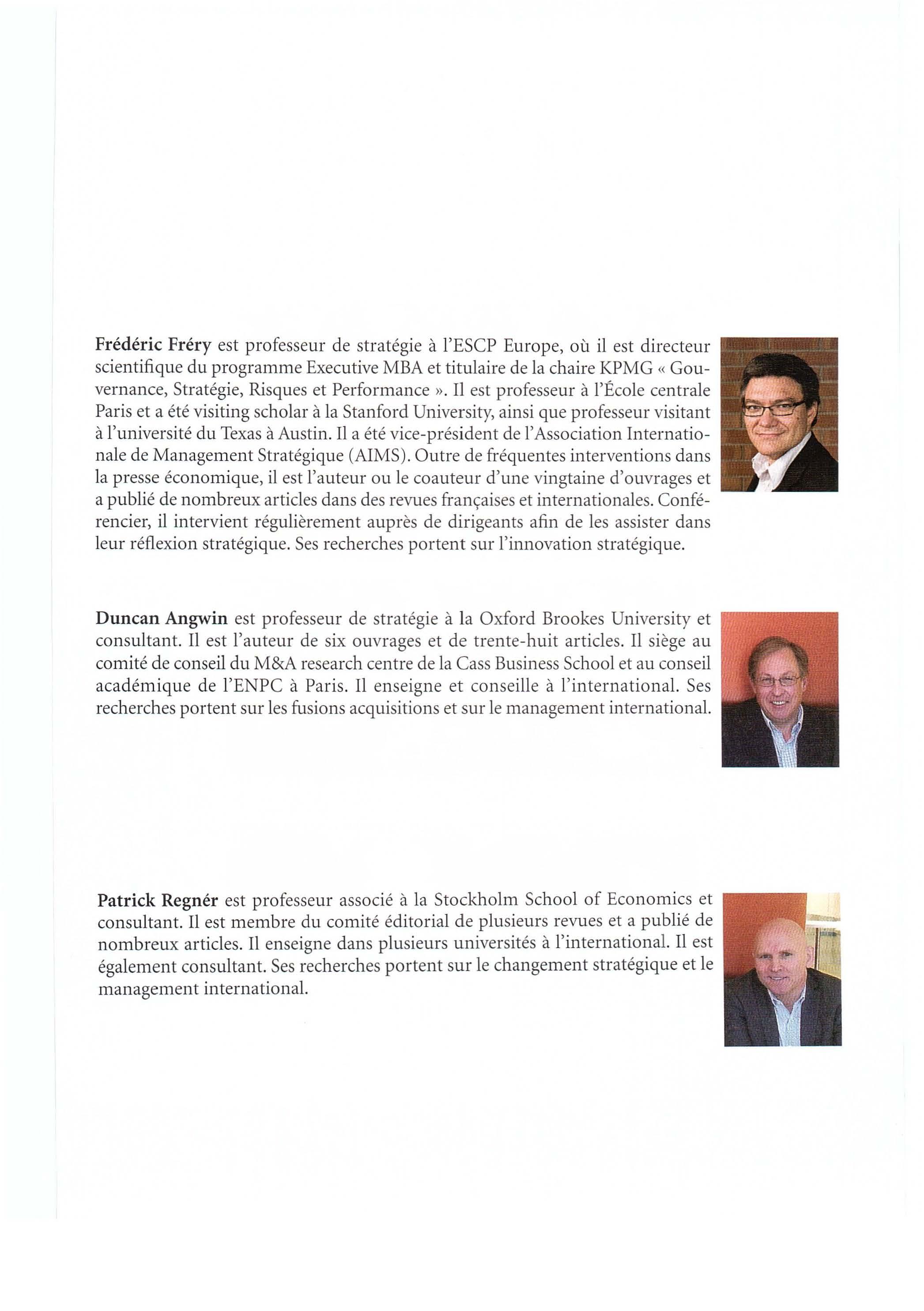 Frédéric Fréry est professeur de stratégie à l'ESCP Europe, où il est directeur scientifique du programme Executive MBA et titulaire de la chaire KPMG « Gouvernance, Stratégie, Risques et Performance » . Il est professeur à l'École centrale Paris et a été visiting scholar à la Stan ford University, ainsi que professeur visitant à l'université du Texas à Austin Il a été vice-président de l'Association Internationale de Management Stratégique (AIMS). Outre de fréquentes interventions dans la presse écono miqu e, il est l'auteur ou le coauteur d ' une vingtaine d'ouvrages et a publié de nombreux articles dans des revues françaises et internationales. Conférencier, il intervient régulièrement auprès de dirigeants afin de les assister dans leur réflexion stratégique. Ses recherches portent sur l'innovation stratégique.
