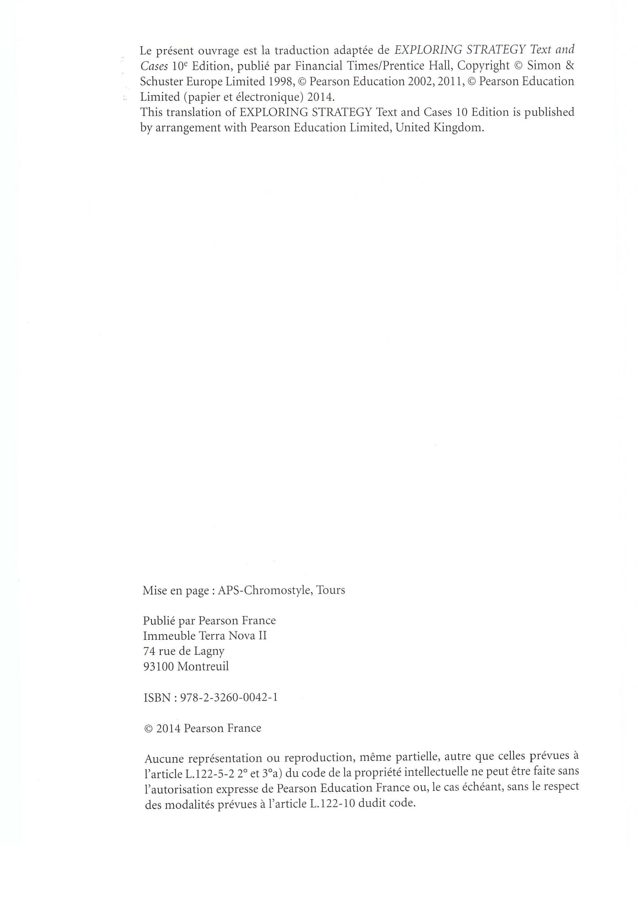 Aucune représentation ou reproduction, même partielle, autre que celles prévues à l'article L.122-5-2 2° et 3°a) du code de la propriété intellectuelle ne peut être faite sans l'autorisation expresse de Pearson Education France ou, le cas échéant, sans le respect des modalités prévues à l'article L.122-10 dudit code.