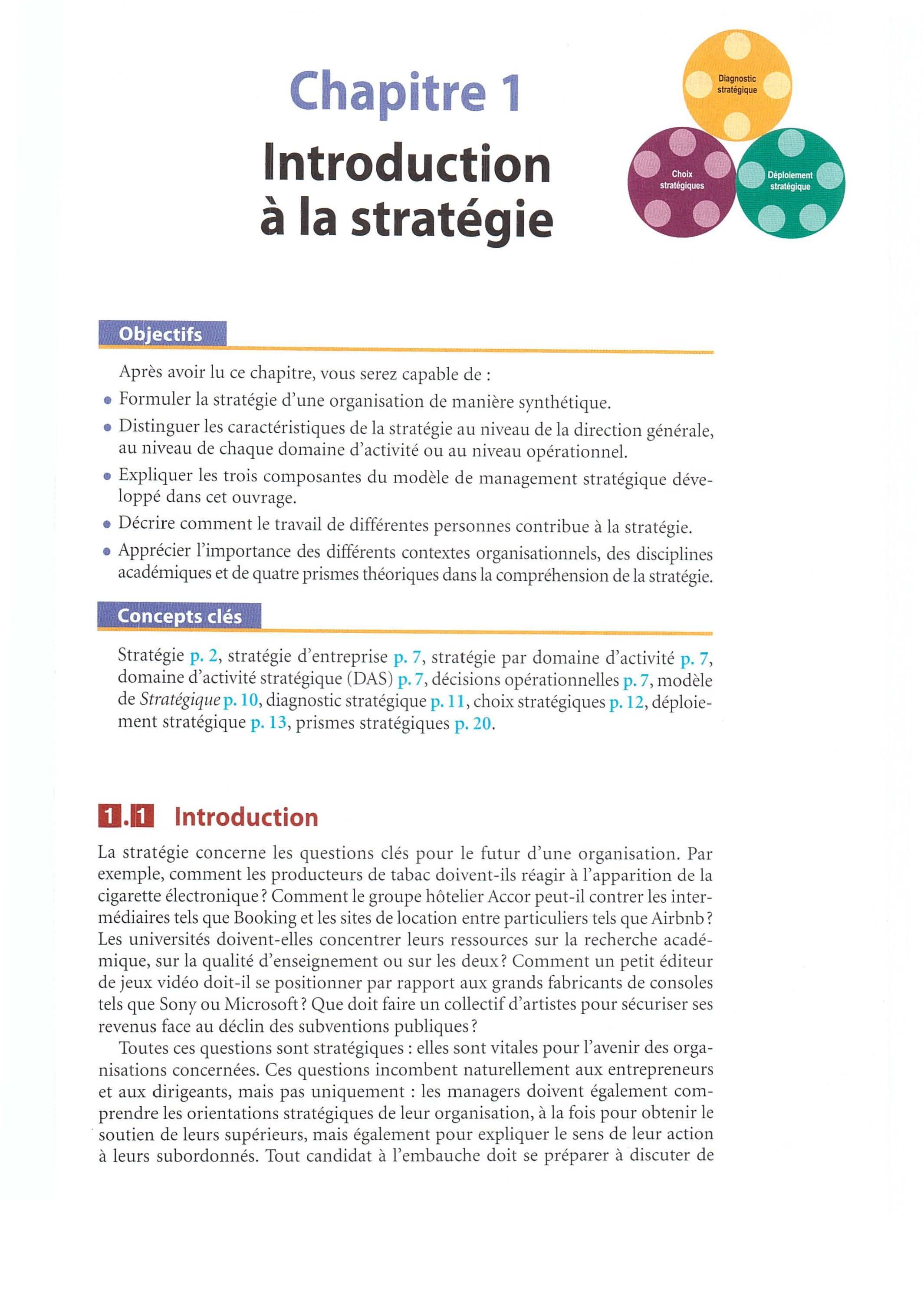 Stratégie p. 2 , stratégie d ' entreprise p. 7 , stratégie par domaine d ' activité p. 7, domaine d'activité stratégique (DAS ) p. 7 , décisions opérationnelles p. 7 , modèle de Stratégique p 10 , diagnostic stratégique p. 11, choix stratégiques p.12, déploiement stratégique p. 13 , prismes stratégiques p. 20