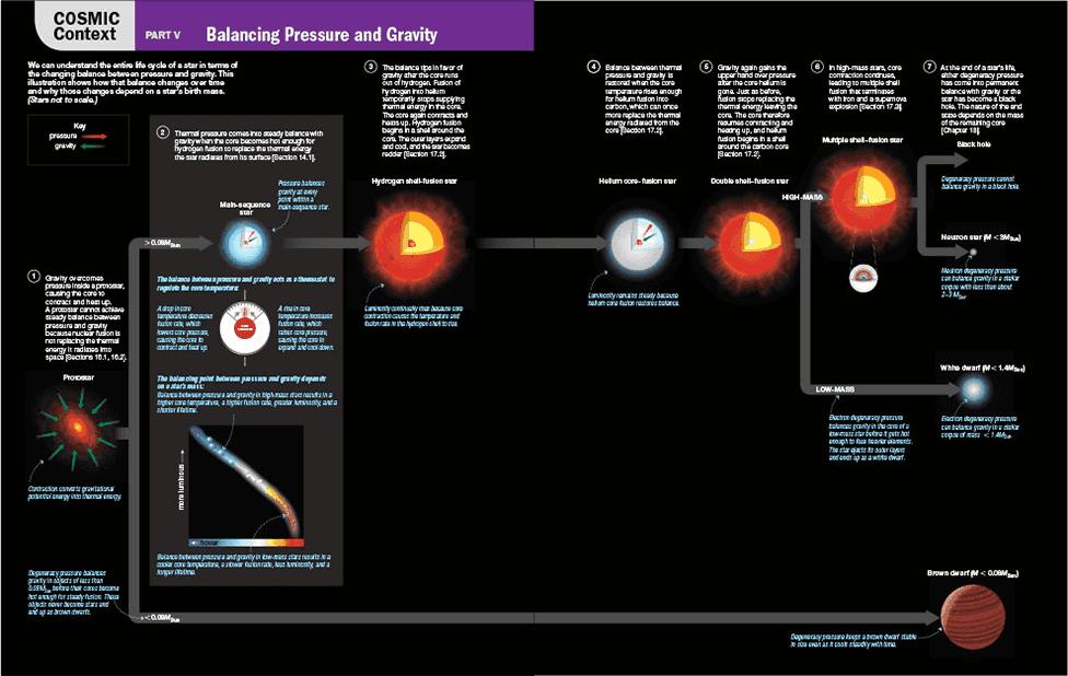Theseareourchaptersonstarsandstellarlifecycles. Chapter 14 covers theSunindepthsothatitcanserveasaconcretemodelforbuildingan understandingofotherstars. Chapter 15 describesthegeneral propertiesofotherstars,howwemeasuretheseproperties,andhowwe classifystarswiththeH-Rdiagram. Chapter 16 coversstarbirth,and therestofstellarevolutionisdiscussedin Chapter 17 . Chapter 18 focusesontheendpointsofstellarevolution:whitedwarfs,neutronstars, andblackholes.