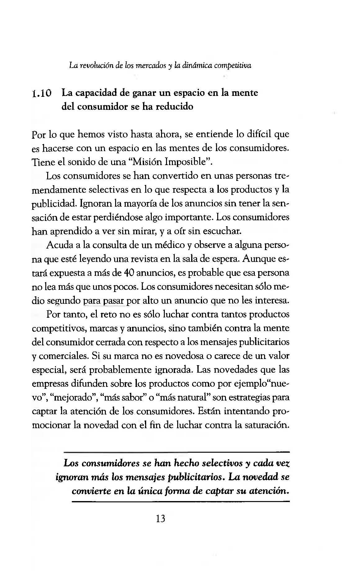 1.10 La capacidad de ganar un espacio en la mente del consumidor se ha reducido