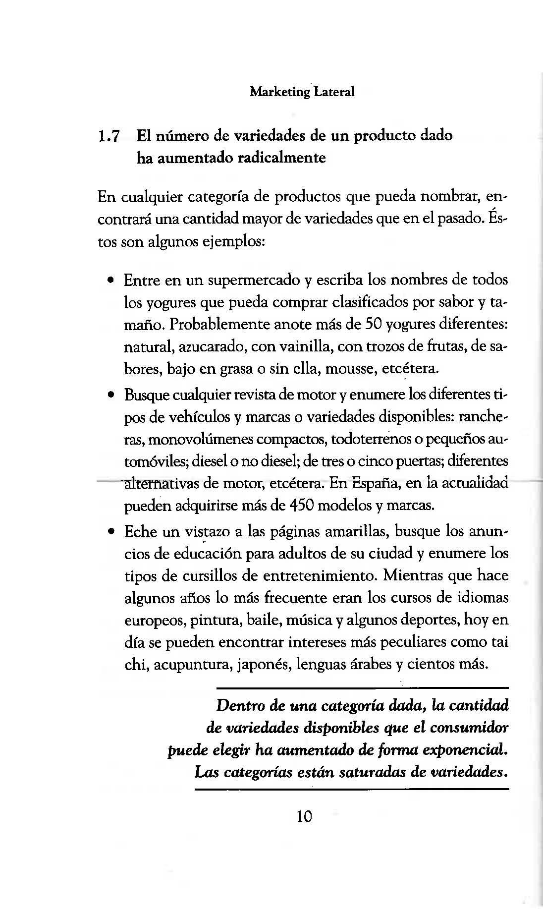 Dentro de una categoría dada, la cantidad de variedades disponibles que el consumidor puede elegir ha aumentado de forma exponencial. Las categorías están saturadas de variedades.