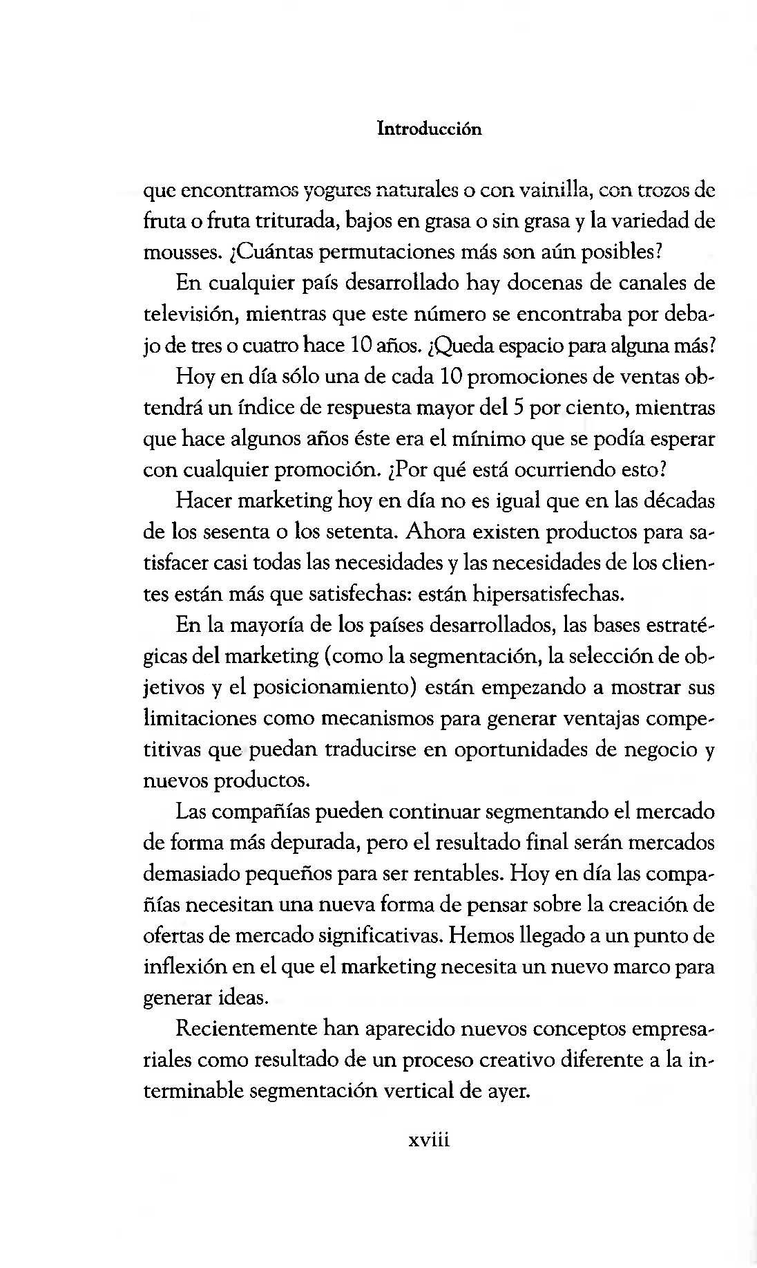 En la mayoría de los países desarrollados, las bases estratégicas del marketing (como la segmentación, la selección de objetivos y el posicionamiento) están empezando a mostrar sus limitaciones como mecanismos para generar ventajas competitivas que puedan traducirse en oportunidades de negocio y nuevos productos.