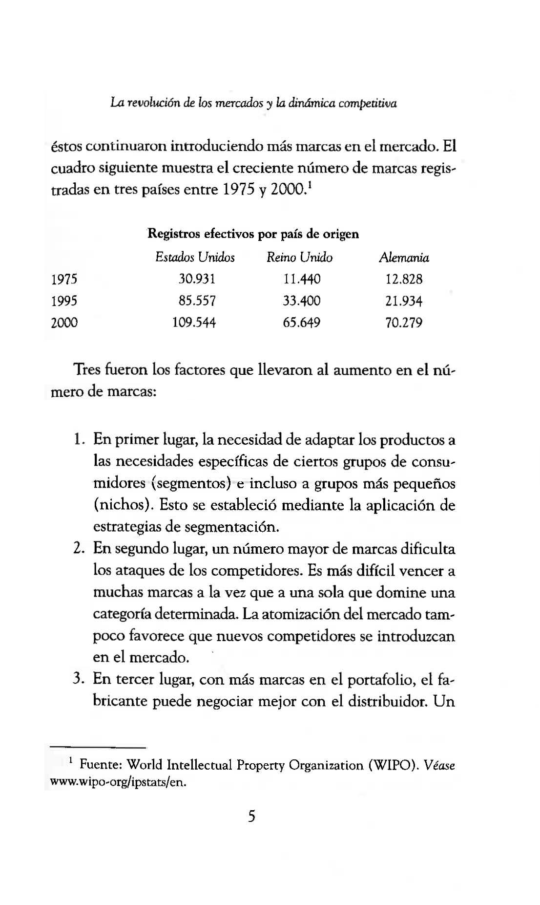 La revolución de los mercados y la dinámica competitiva éstos cuntinuaron introduciendo más marcas en el mercado. El cuadro siguiente muestra el creciente número de marcas registradas en tres países entre 1975 y 2000. 1
