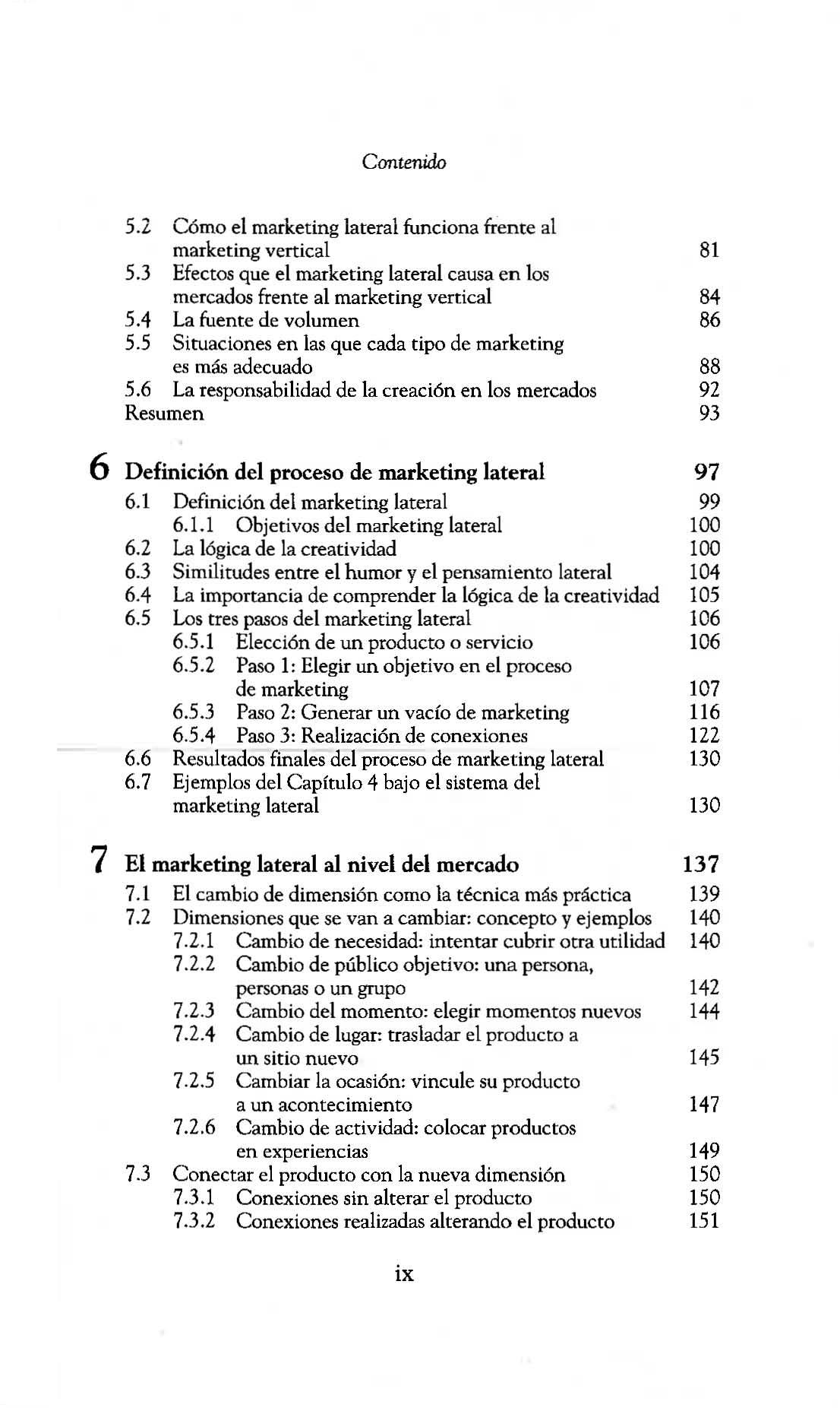 6.7 Ejem plos del Capítulo 4 bajo e! sistema del ma rketing lateral 130