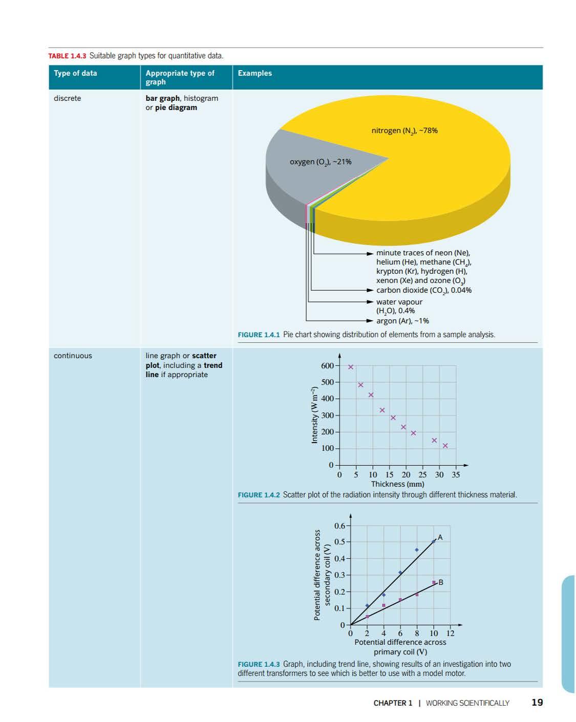 h is imponant lhat you choose an approp riate g r aph type lo suit lhe data lhat rou ha,·e collected. Table 1.4.3 summar ises suita ble graph s fo r discrete or continuous quantitati, e data