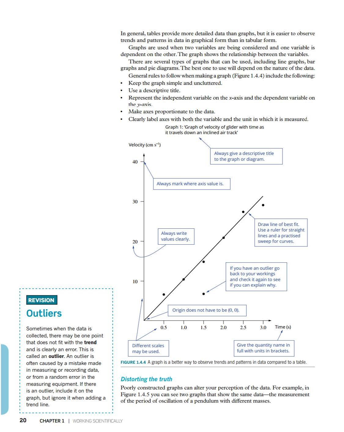 Sometimes when the data is collected, there may be one point that does not fit with the trend and i s clearl y an error. Th i s is called an o utlier An outlier is often caused by a mistake made in measuring or recordi ng data, or from a random error in the measuring equi pment. If th ere is an outlier, include i t on the graph, but ignore i t w hen addi ng a trend line