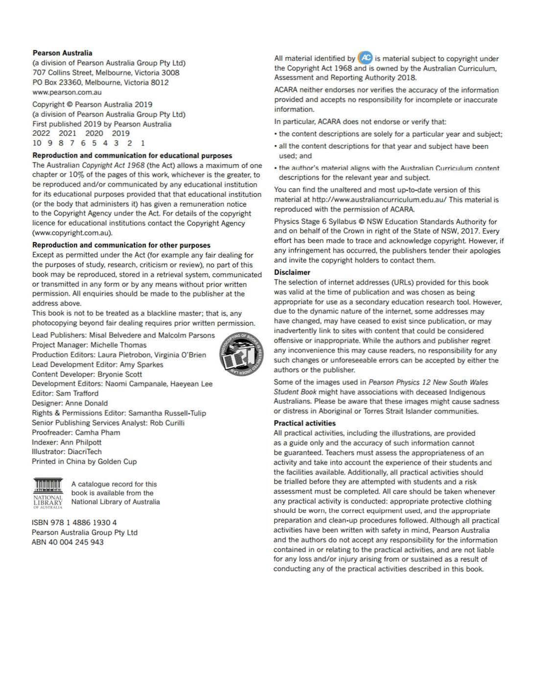 Some of t he images used 1n PNrson Phys,cs 12 New South Wales Student Book might have assoc.ahons with deceased Indigenous Austral.ans. Please be aware that these images might cause sadness or distress in Aboriginal or Torres Strait Islander commumt,es.