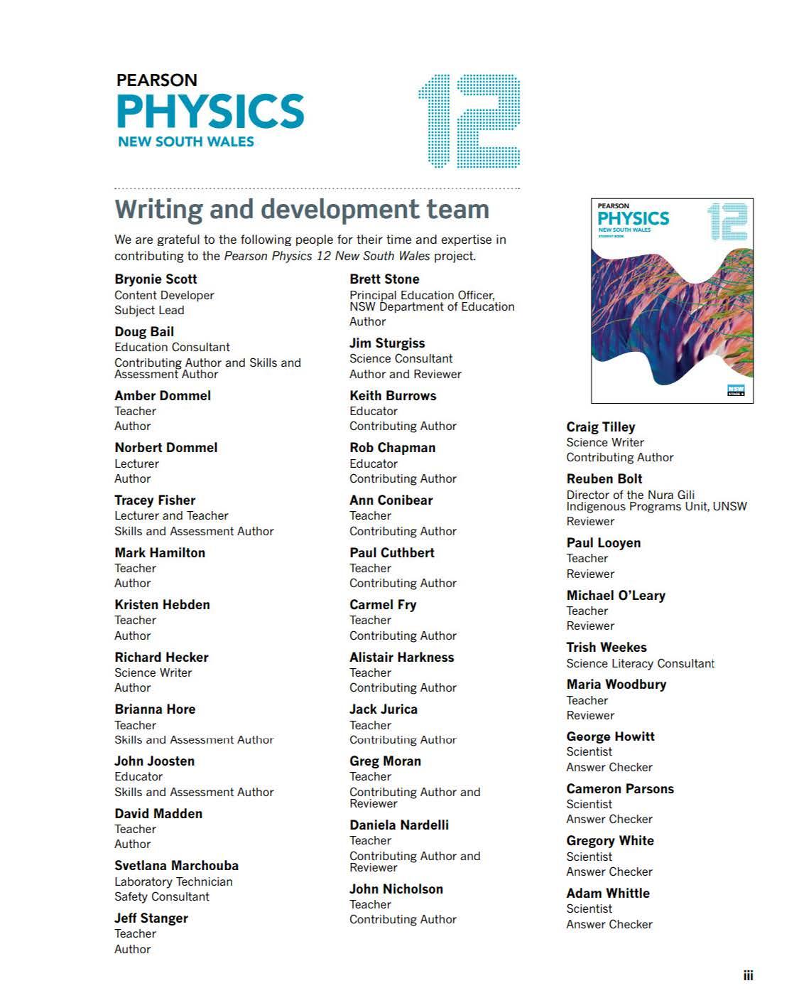 We a r e grateful to the follow i ng peop le for thei r time an d expertise i n contr ibuting t o t he Pearson Physics 12 New Sou th Wales project.
