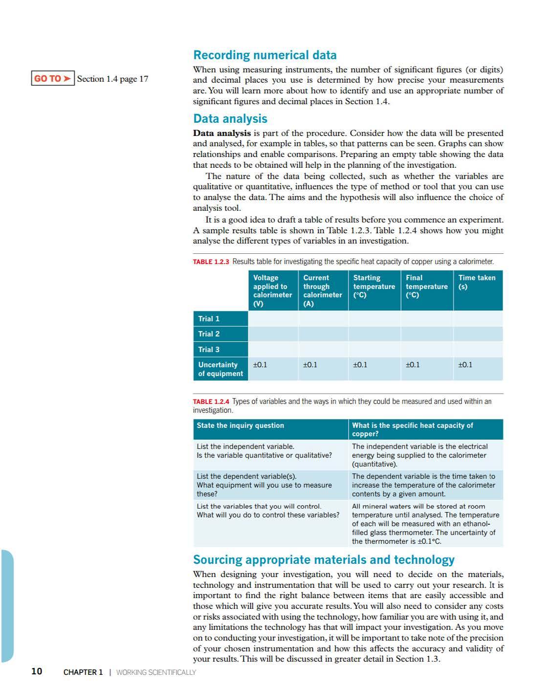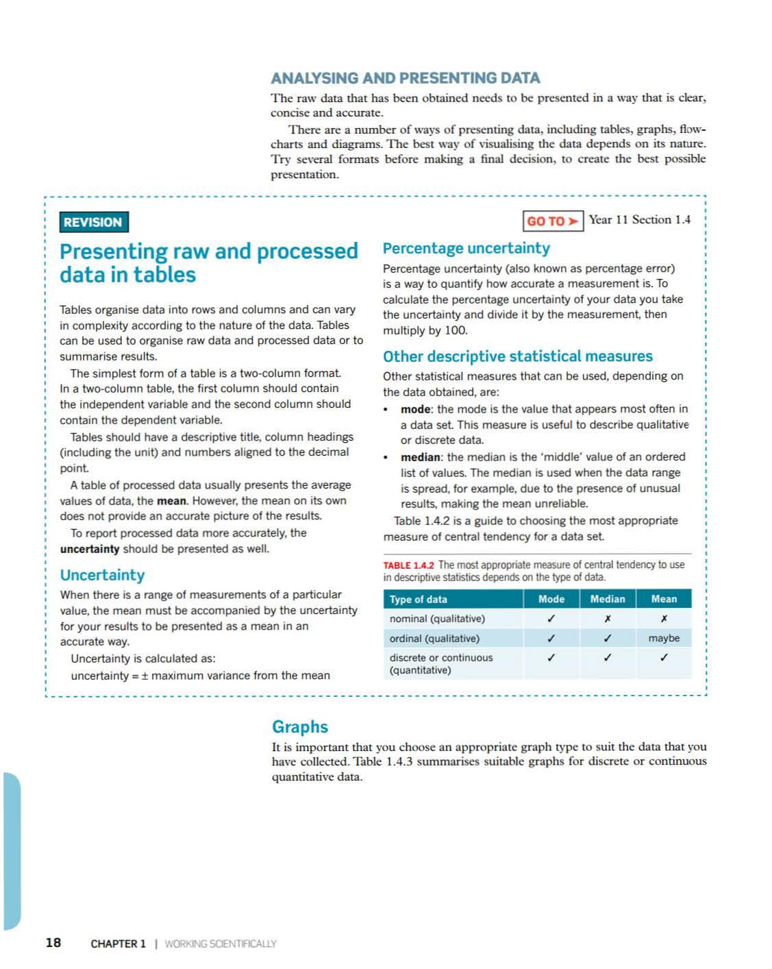 Tables organi se data into rows and columns and can vary in complexity according to the nature of the data. Tables can be used to organise raw data and p r ocessed data or to summa r ise results.