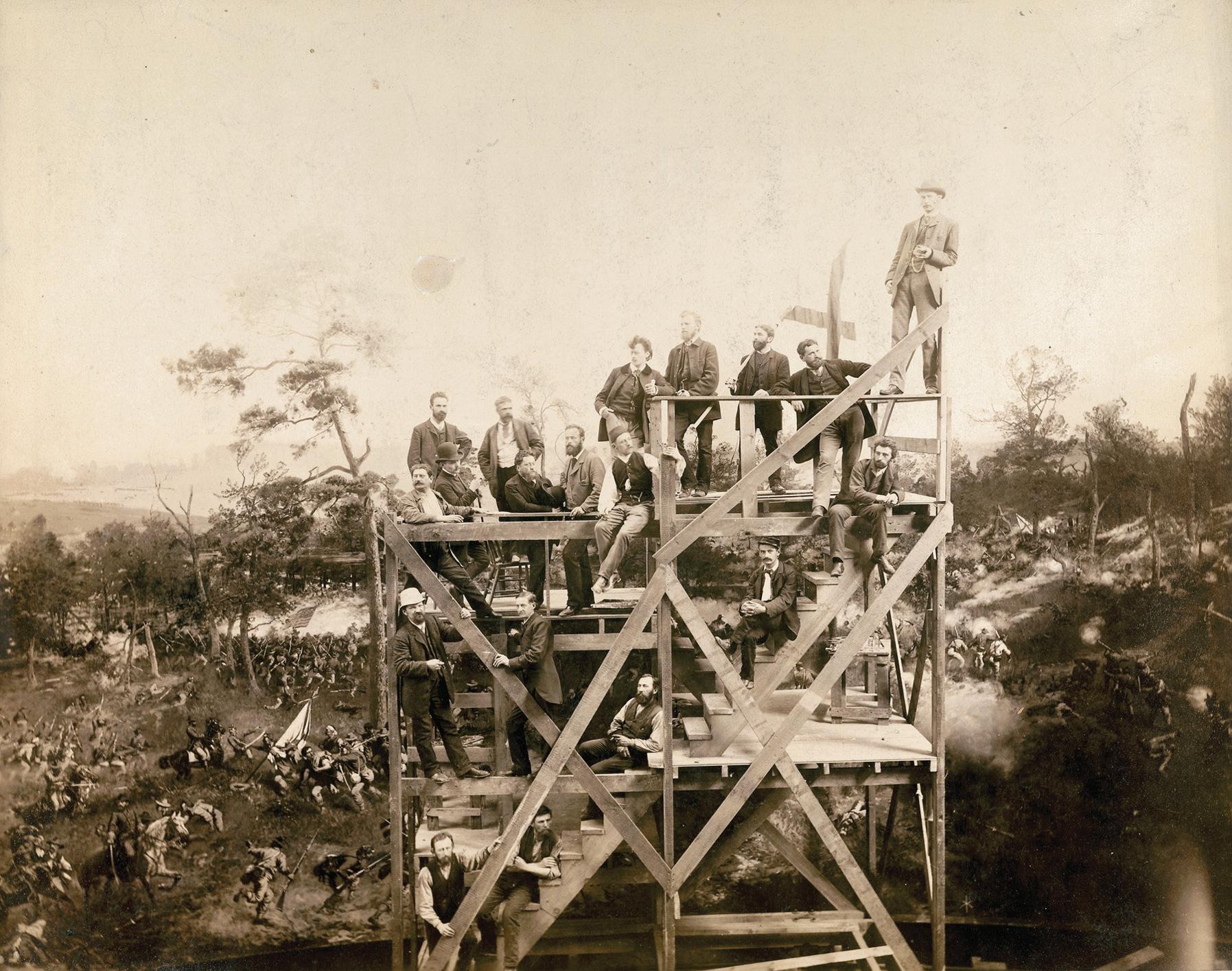 Fig. I.1 Artists of the American Panorama Company, including Friedrich Heine (in pith helmet at far left, second level) in front of the nearly finished Battle of Atlanta in their Milwaukee studio on June 6, 1886. Photo: Wisconsin Historical Society, WHS-26071