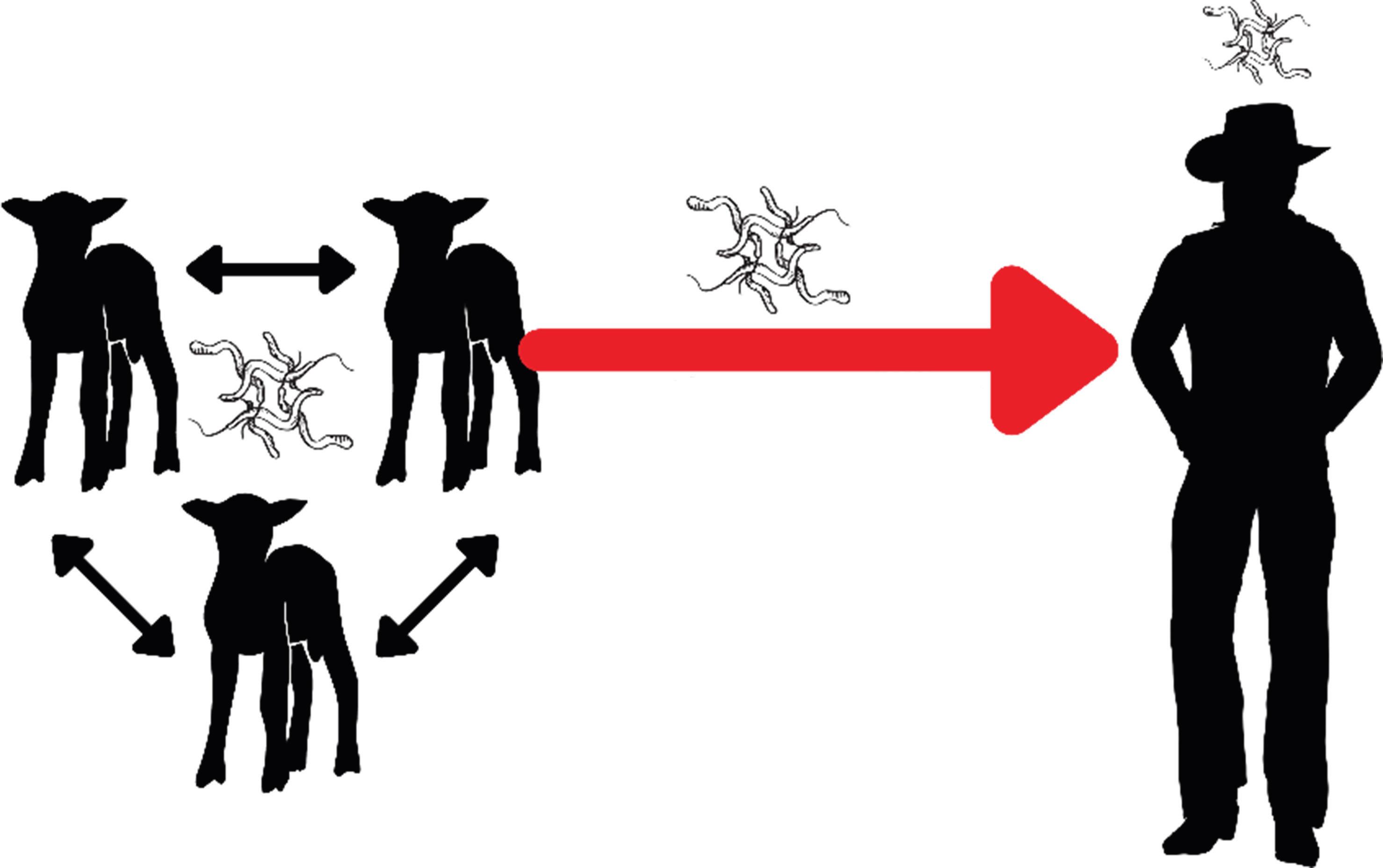 Thisisamildlyamusingcaseofa zoonosis apathogentransmittedfromnon-humananimals tohumans (Fig. 1.1). Campylobacterjejuni wascirculatinginthesheepflockandtheunusualcontactbetweenlambscrotumandhumanteethand mouthsenabledzoonoticdiseasetransmission.