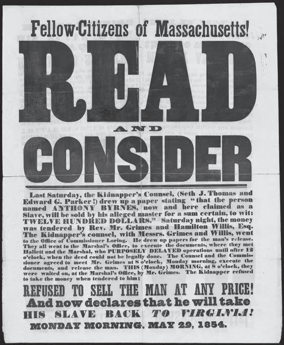 The Anthony Burns case in 1854 shocked Massachusetts residents as well as citizens across the free states. (Boston Public Library, Rare Books Department)