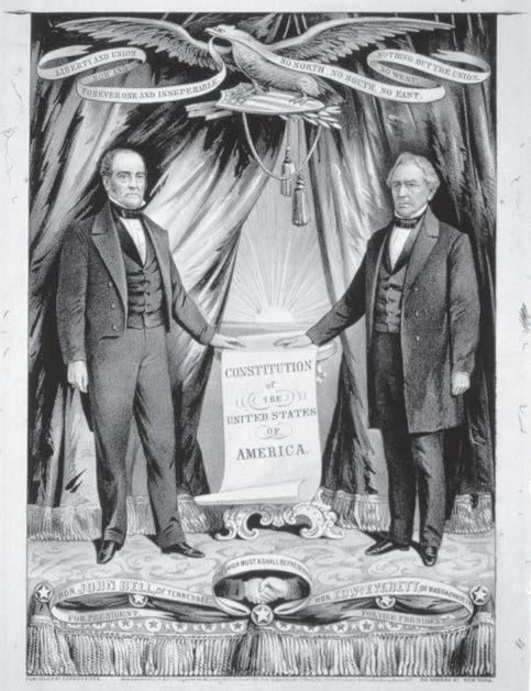 Although the Constitutional Union Party, led in the 1860 presidential election by candidates John Bell and Edward Everett, garnered some support in Upper South states such as Tennessee, there was little support for a middle-ofthe-road position on slavery in the free states. (Library of Congress)