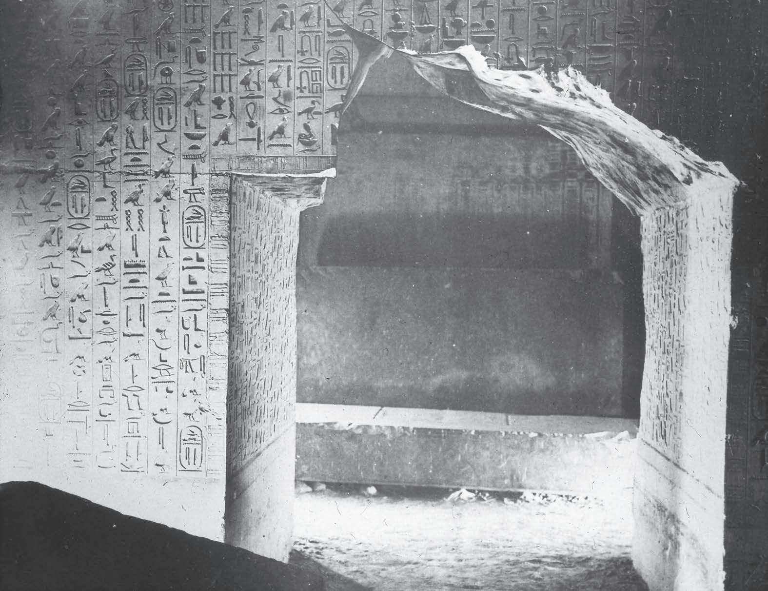 FIGURE 1.3 A burial chamber with the walls covered with Pyramid Texts. Pyramid of Unas. 5th Dyn. Sakkara., n.d. Brooklyn Museum Archives (S10–08 Sakkara, image 9643)