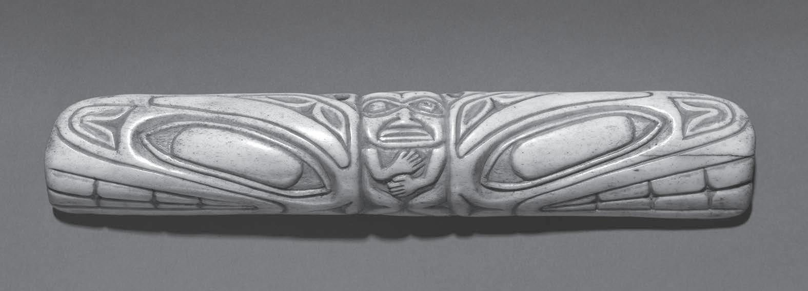 To communicate with the world of spirits was the role of shamans. Shamanism is as old as animism, also dating back to the Old Stone Age. In shamanism, the soul was believed to leave the body and journey to the spirit world during sleep and insanity, in trances and delirium, and ultimately upon death. Illness was caused by losing one’s soul in dreaming, during a trauma or through witchcraft. During rituals, shamans went into a trance to allow their souls to enter the realm of spirits, where they could practice divination and healing. Shamans treated illness by healing the soul. Immersed in an enchanting trance music, wearing the soulcatcher as a necklace, Tsimshian shamans of the Pacific Northwest Coast danced and went into a trance to enter the spirit world and capture the soul of a patient or an evil spirit. The soulcatcher, an amulet in the form of a tube decorated by mythical figures, was used to contain the lost soul or hold an evil spirit extracted from a patient (Figure 1.8). In Austronesian shamanism, the soul was thought to have two