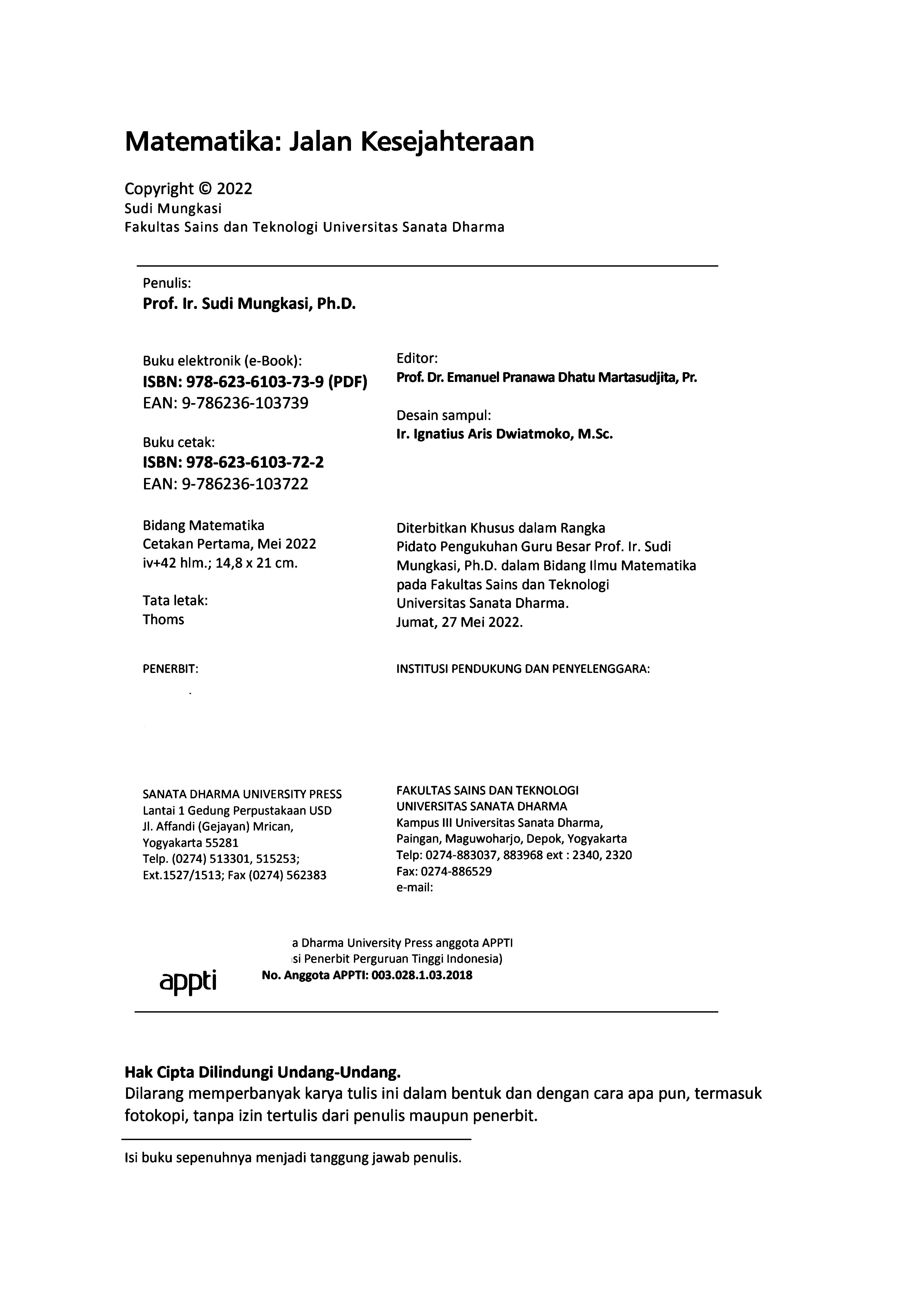 Matematika: Jalan Kesejahteraan 1st Edition Sudi Mungkasi