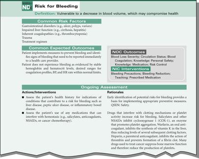FIGURE 1-3 Common risk factors, common expected outcomes, and ongoing assessment of the nursing diagnosis.