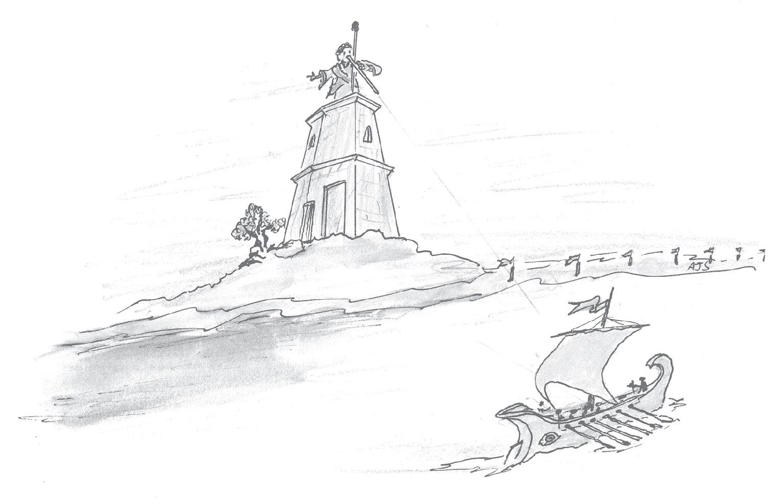 FIGURE 1. Thales measuring a ship’s distance at sea, author sketch.