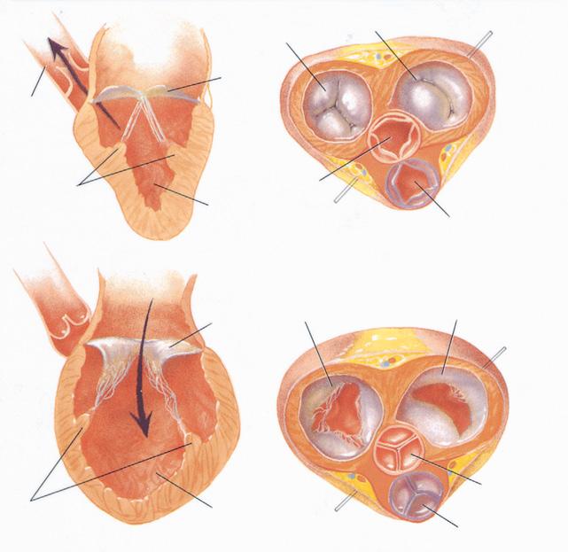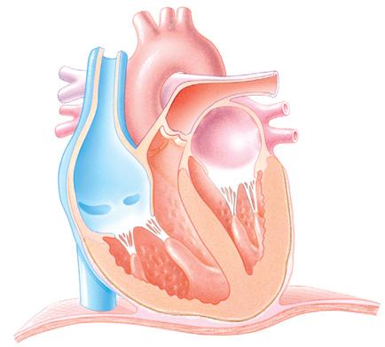 Left atrium Through the Into the left Through the mitral valve ventricles aortic valve into the aorta and out to the systemic circulation