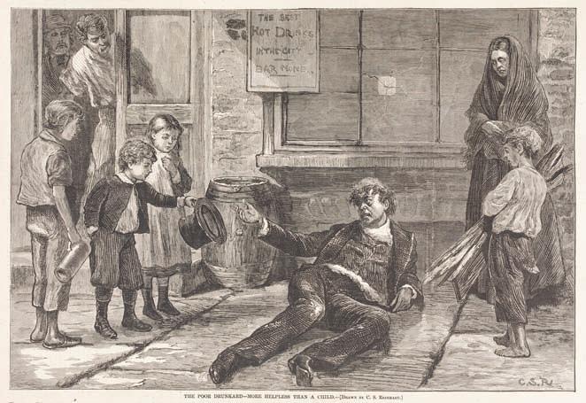 Figure 2. Charles Stanley Reinhart’s 1874 “The Poor Drunkard—More Helpless Than a Child,” Harper’s. Courtesy, American Antiquarian Society.