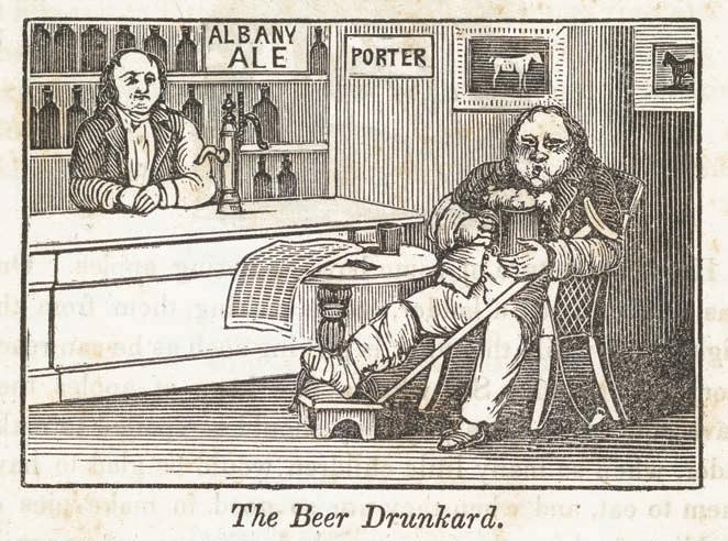 Similarly, Jewett's The Youth's Temperance Lecturer (1841), published the following year for older readers, also pictured drunkards as morally bankrupt and alcohol as a poison. In ªThe Beer Drunkard,º an overweight man sits in a