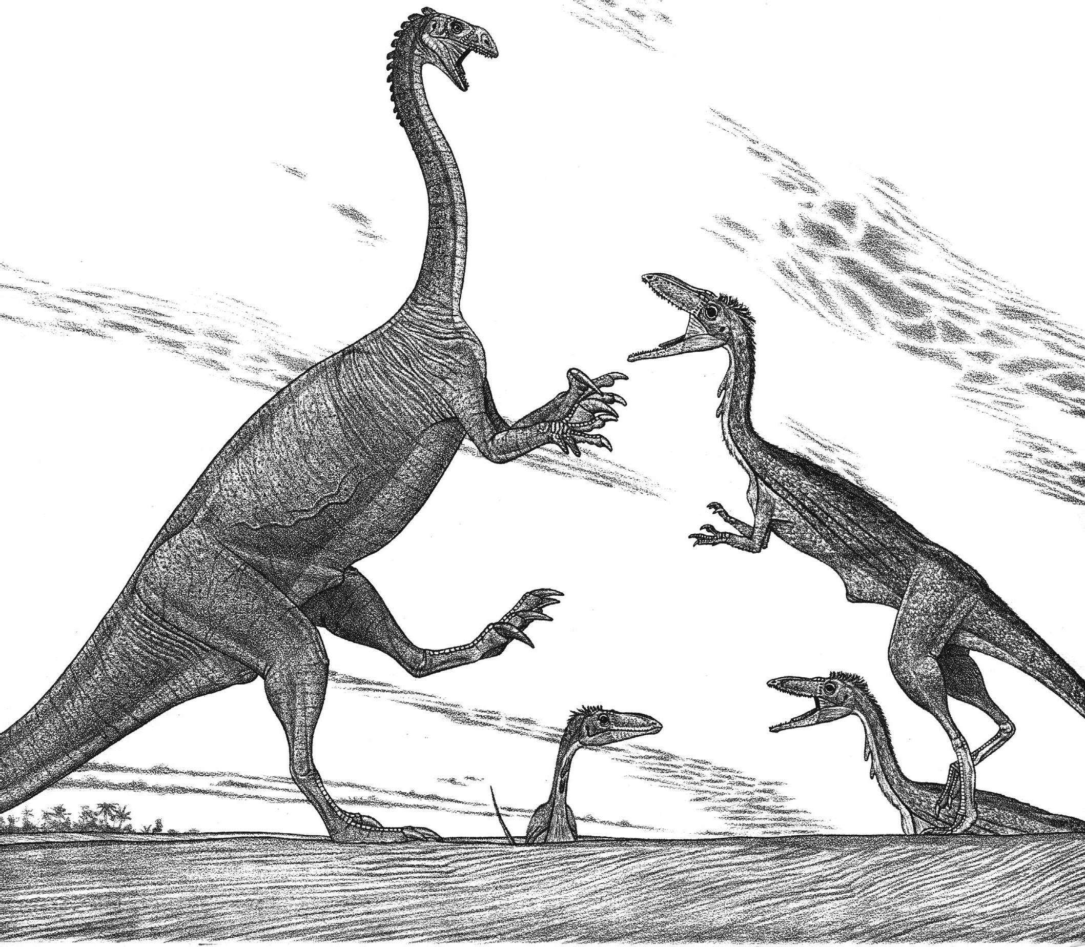 line with the more active lifestyles the researchers now favor. This artist and researcher noticed that the sickleclawed dromaeosaurs and troodonts, as well as the oviraptorosaurs, possessed anatomical features otherwise found in flightless birds and suggested that these dinosaurs were also secondarily flightless.