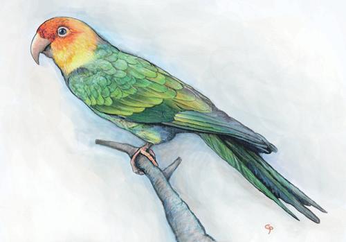 Figure 4. Carolina parakeet. Drawing by Charles Pilkey.
