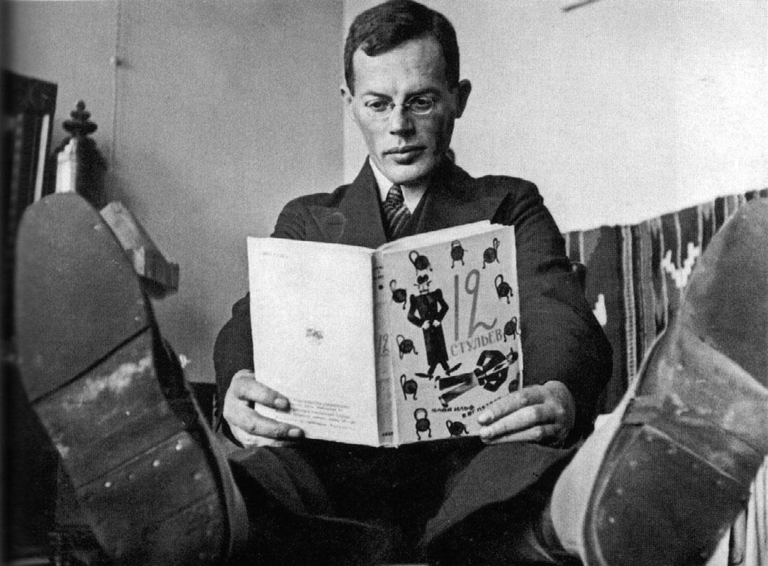 Figure0.2EvgenyPetrovreadingtheEnglisheditionof TheLittle GoldenCalf,c.1930.EleazarLangman.WikimediaCommons.