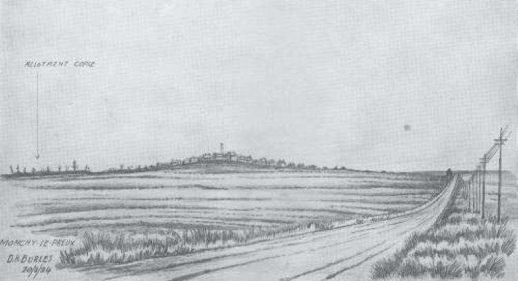 The Road Past Monchy-lePreux, sketched by Captain David Burles, Essex Yeomanry, 1917. (Out of copyright)