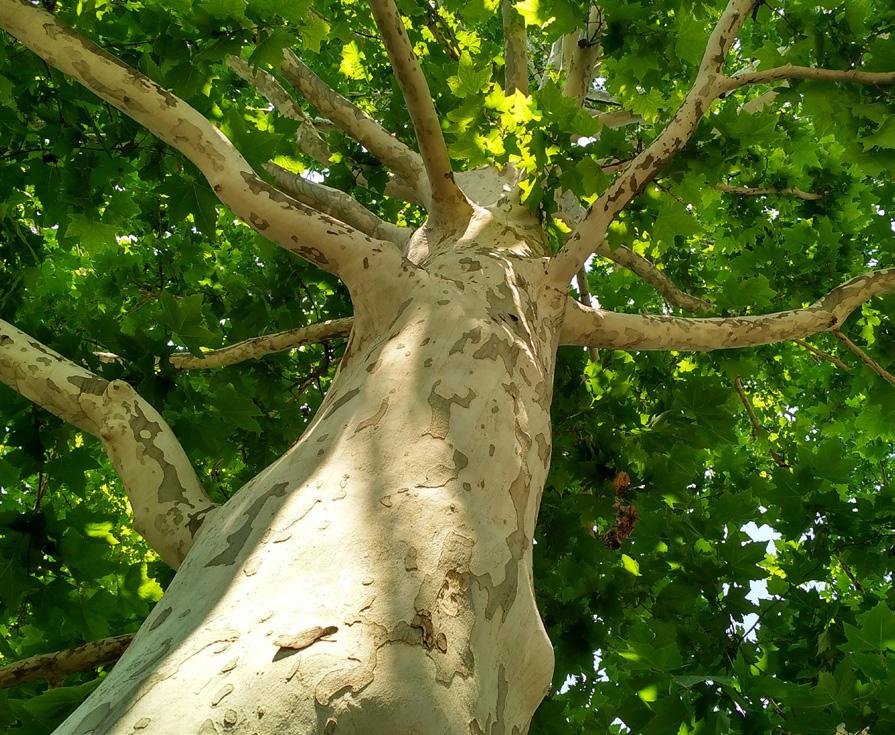  The Oriental plane tree (Platanus orientalis). The nearest living relative to plane trees (Platanus) is the aquatic and herbaceous sacred lotus (Nelumbo).