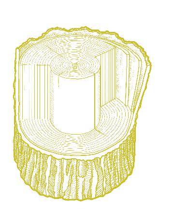 The innermost part of the tree consists of xylem tissue produced by the vascular cambium. This tissue is involved in the transport of water and nutrients and, unlike the sap-transporting phloem, is composed of dead cells. Typically, in both angiosperms and conifers, the outer xylem wood is lighter in color and weight and is called sapwood. In most trees, the older xylem found in the tree’s center is chemically transformed to form heartwood, which is often darker, heavier, more decay-resistant, and stronger than the younger sapwood surrounding it.