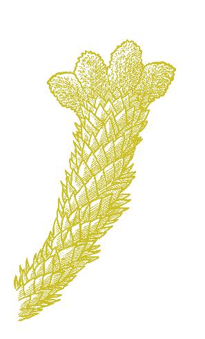The trees of early forests reproduced through spores, not seeds. The roots and the size of the trees at the Catskill site help us imagine what this incredibly ancient forest must have looked like. There were a few Stigmaria , the roots of lycopsids—the so-called “giant club mosses” that could reach heights of 98 ft (30 m). The forest was also home to tree-fern-like trees called cladoxylopsids, which have no living relatives but are related to ferns and horsetails (Equisetum). At full size, these stood up to 40 ft (12 m) tall and had no leaves, but they did develop a canopy of photosynthesizing twigs and branches. Unusually detailed fossil cladoxylopsids from China indicate that they were hollow, and as the plant grew larger, the resulting strain would tear the trunk. These rips and tears would repair themselves over time to produce diameter growth—a violent, Procrustean solution to the secondary-growth challenge of increasing the diameter of the trunk as a tree grows taller.