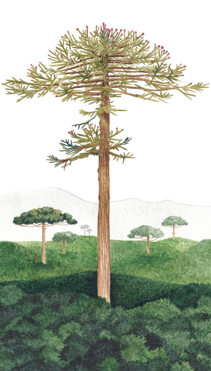 Araucaria araucana trees growing in Conguillío National Park, in the Lakes District of Chile. Monkey puzzle trees share a common ancestry with trees from the time when Australia, Antarctica (fossil plants), and South America were linked by land in the supercontinent known as Gondwanaland.