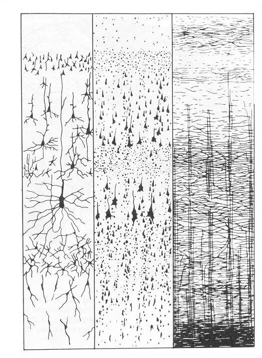 Itis,ofcourse,ofmajorinteresttoestablishfunctionalcorrelatesofdifferentcorticalareas,achallengethatdrivesmanyphysiologicalstudies.Wemightspeculatethat thediversefunctionalspecializationwithintheneocortexfoundwithelectrophysiologicalmeasurementsisreflectedinmajorstructuraldifferencesamongthedifferent corticalareastosupportspecializedmentalfunctions.Itisthereforeremarkableto realizethatthisisnotthecase.Instead,itisfoundthatdifferentareasoftheneocortex havearemarkablycommonneuronalorganization.Allneocorticalareashaveanatomicallydistinguishablelayersasdiscussedbelow.Thedifferencesinthecytoarchitecture, whichhavebeenusedbyBrodmanntomapthecortex,areoftenonlyminorcompared totheprincipalarchitecturewithintheneocortex,andthesevariationscannotaccount solelyforthedifferentfunctionalitiesassociatedwiththedifferentcorticalareas. Theneocortexisdifferentinthisrespecttoolderpartsofthebrain,suchasthe brainstem,wherestructuraldifferencesaremuchmorepronounced.Thisisreflected inavarietyofmoreeasilydistinguishablenuclei.Wecanoftenattributespecificlowlevelfunctionstoeachnucleusinthebrainstem.Incontrasttothis,itseemsthatthe cortexisaninformation-processingstructurewithmoreuniversalprocessingabilities thatwespeculateenablemoreflexiblementalabilities.Itisthereforemostinteresting toinvestigatetheinformation-processingcapabilitiesofneuronalnetworkswitha neocorticalarchitecture.