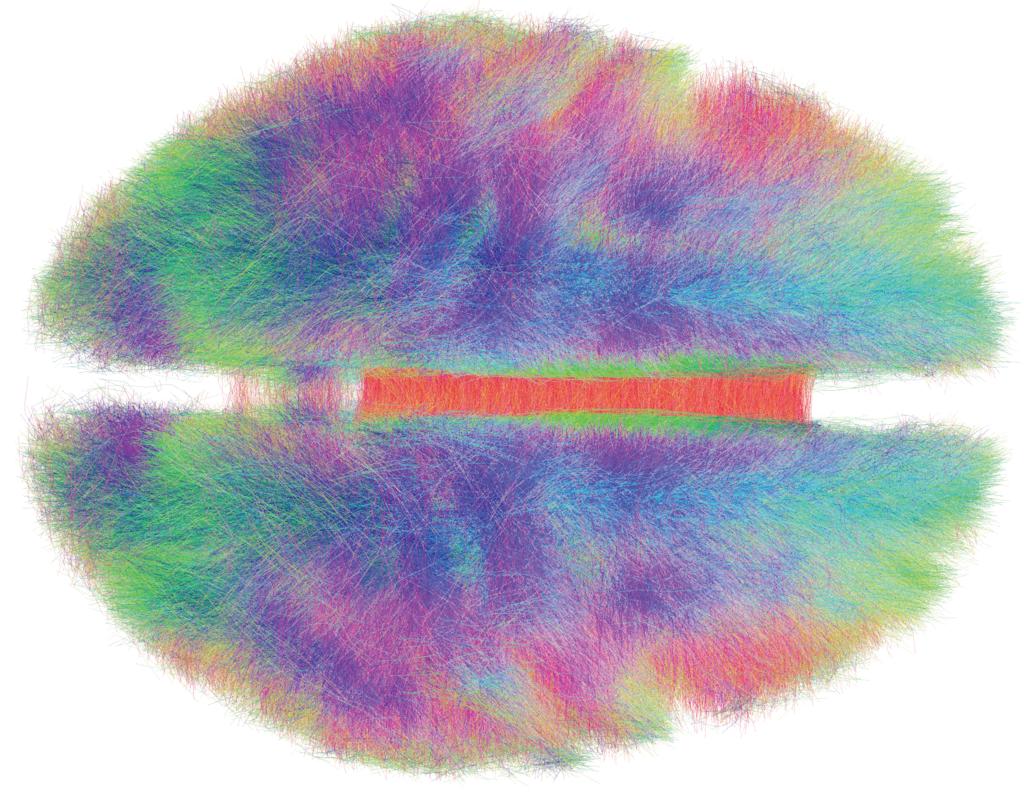 Fig.1.4 Exampleofagroup-levelconnectomeofhumanwhitematter.[A.Horn,D.Ostwald,M. Reisert,F.Blankenburg(November2014).‘Thestructural-functionalconnectomeandthe defaultmodenetworkofthehumanbrain’. NeuroImage 102(1):142-{51].