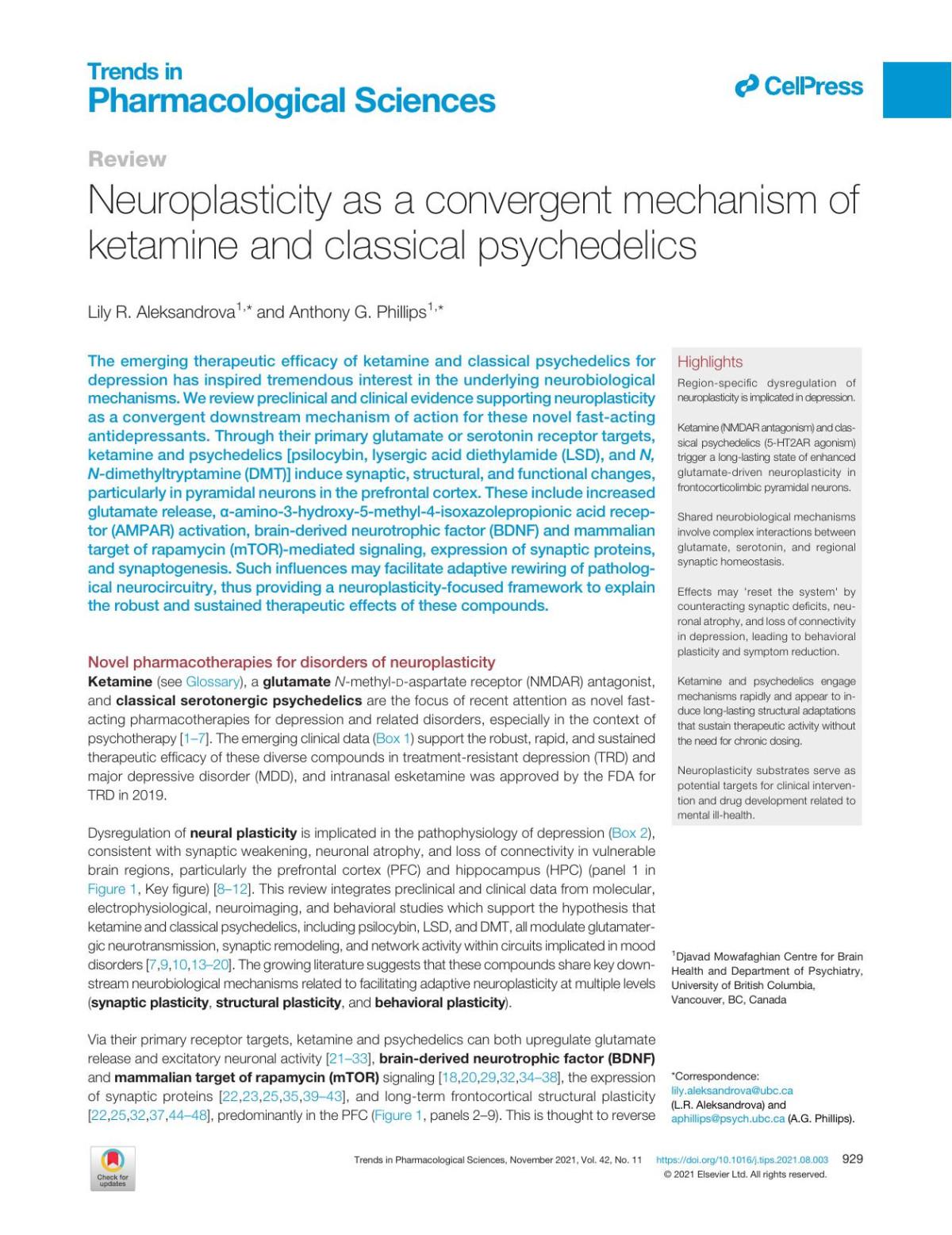 Neuroplasticity as a convergent mechanism of ketamine and classical psychedelics Lily R. Aleksandrova & Anthony G. Phillips