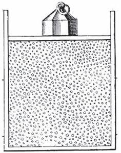 Fig.1.2 Bernoulli’ssketchofgasmoleculesholdingupaweightviatheforceexertedona piston,asstillseentodayinelementarythermodynamicsbooks.(PublicDomain)